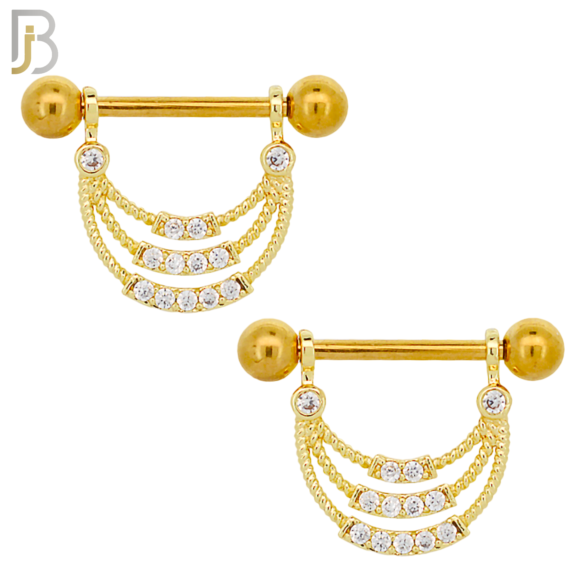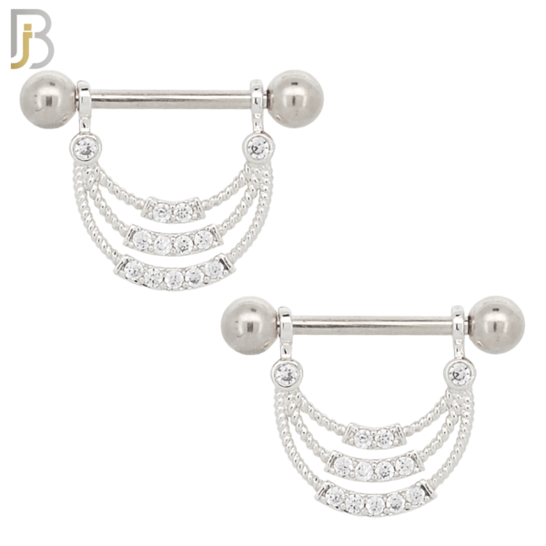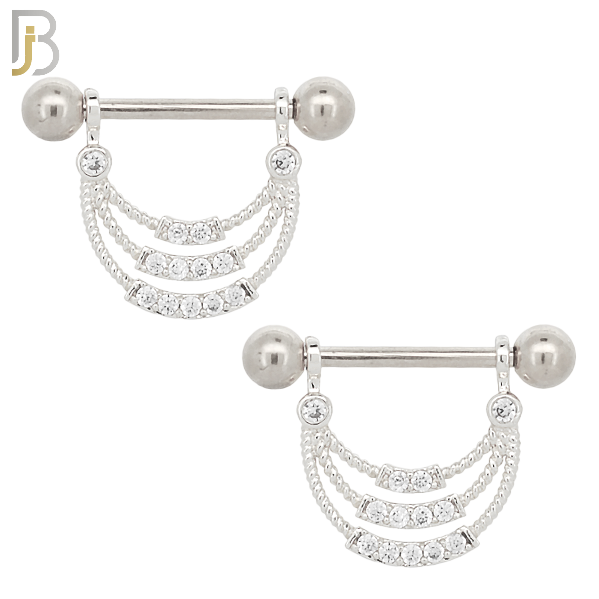 316L Surgical Steel Screw Bar with 3 Layer Curve with Zircon Design Pair