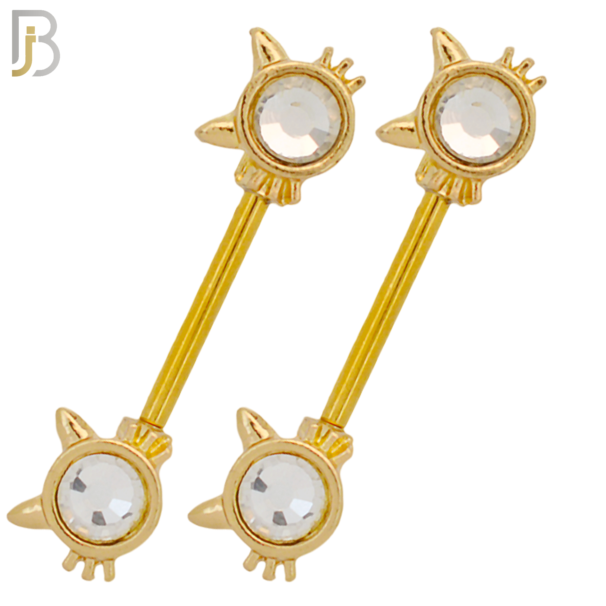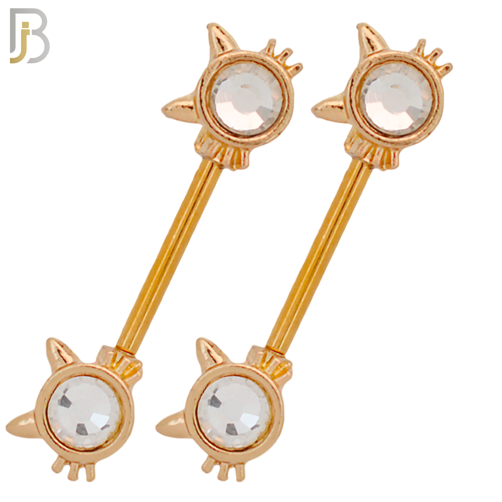 316L Surgical Steel Screw Cat Design with Zircon Nipple Ring Piercing