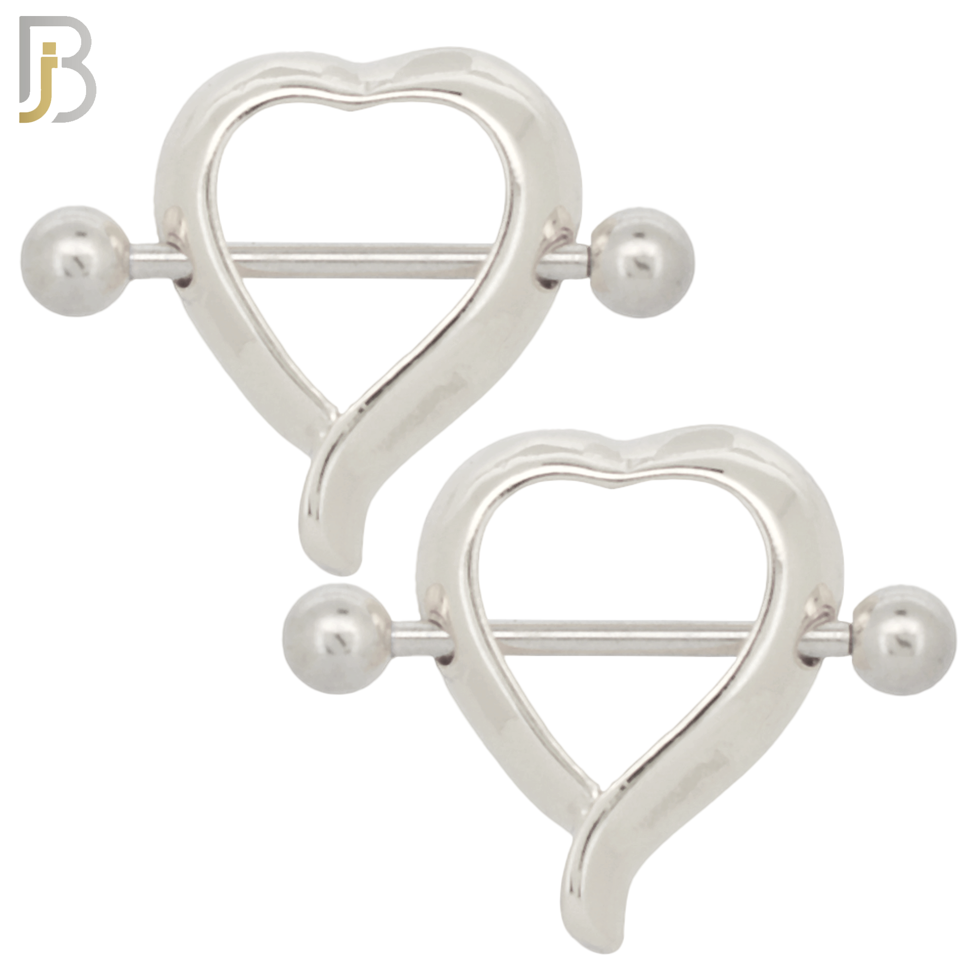 316L Surgical Steel Screw Shield Barbell with Alloy Heart Design Pair