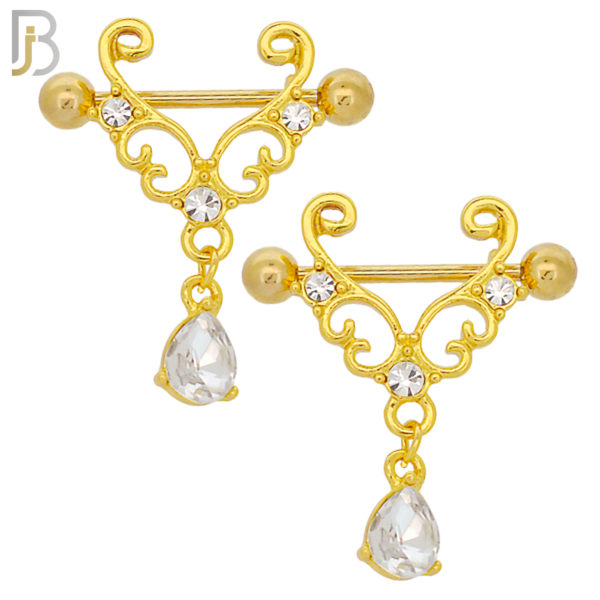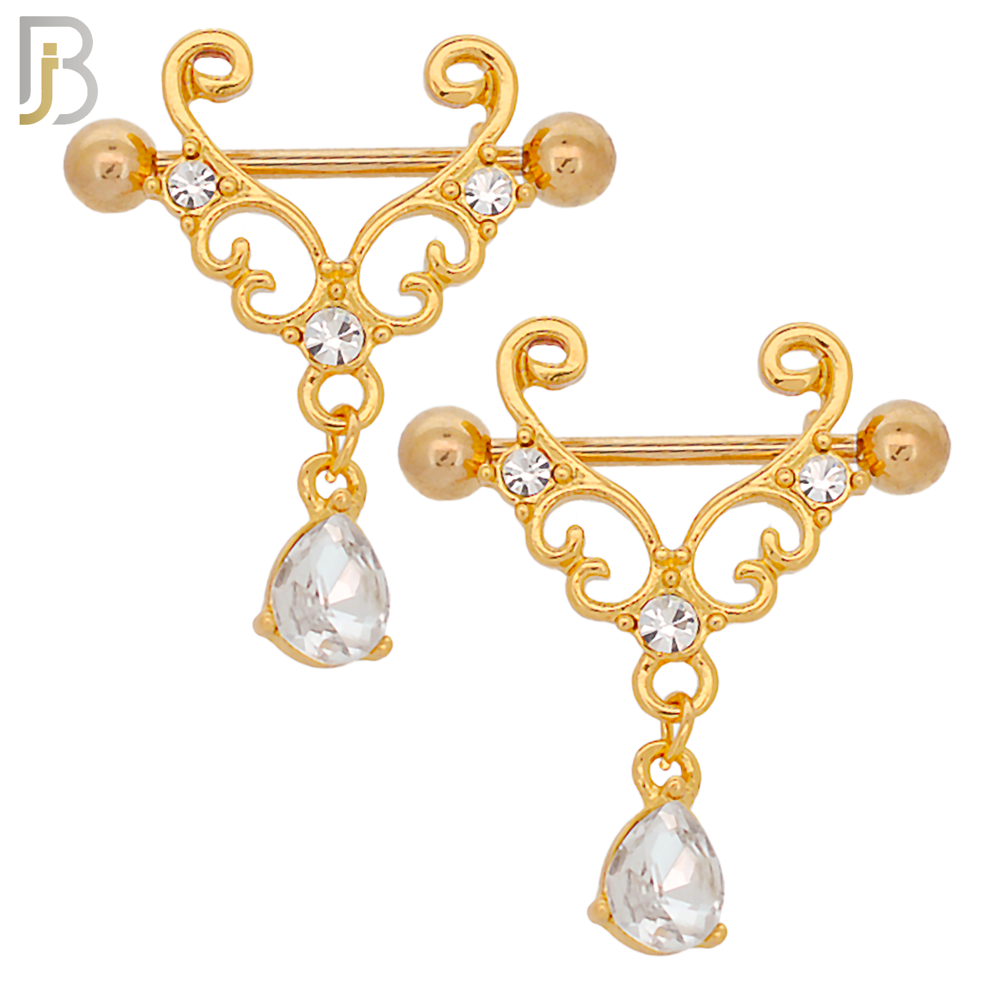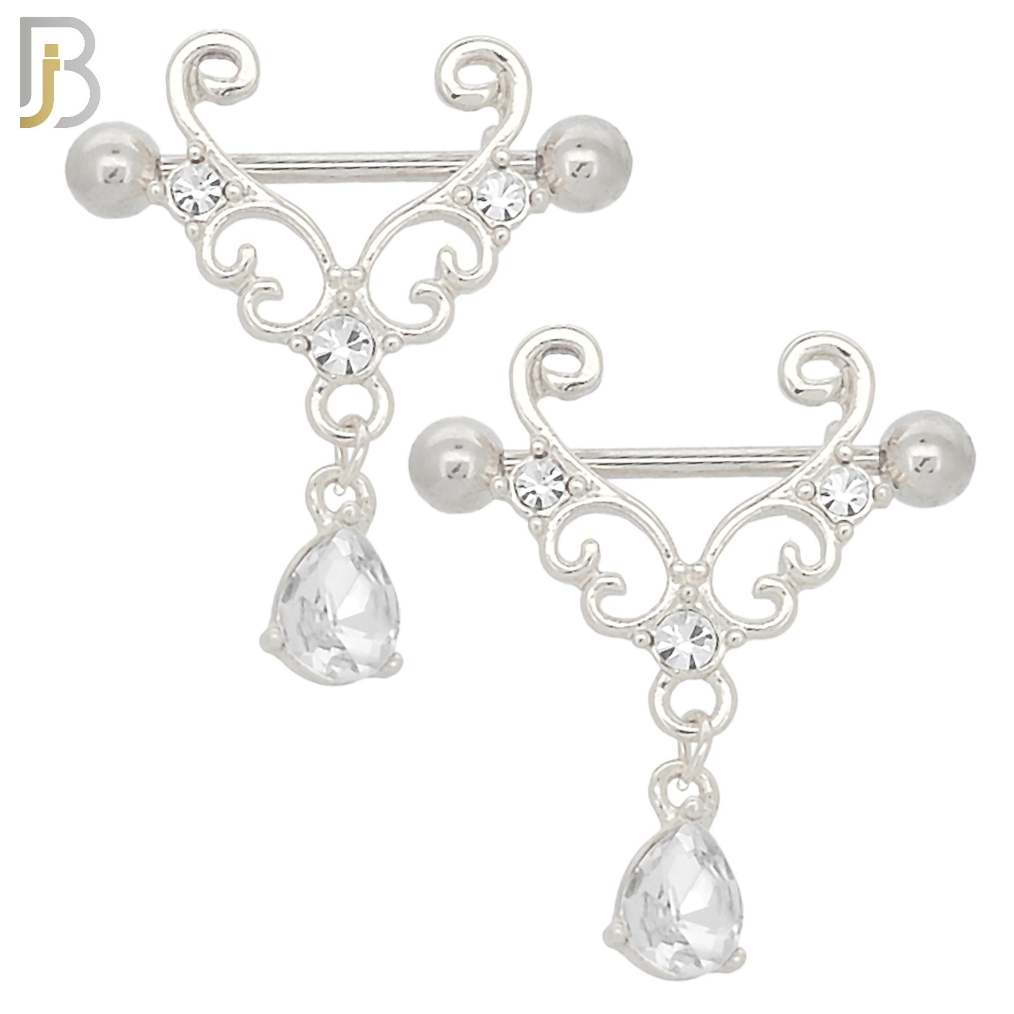 316L Surgical Steel Screw Shield Barbell with Alloy Tribal with Teardrop Dangling CZ Design Pair
