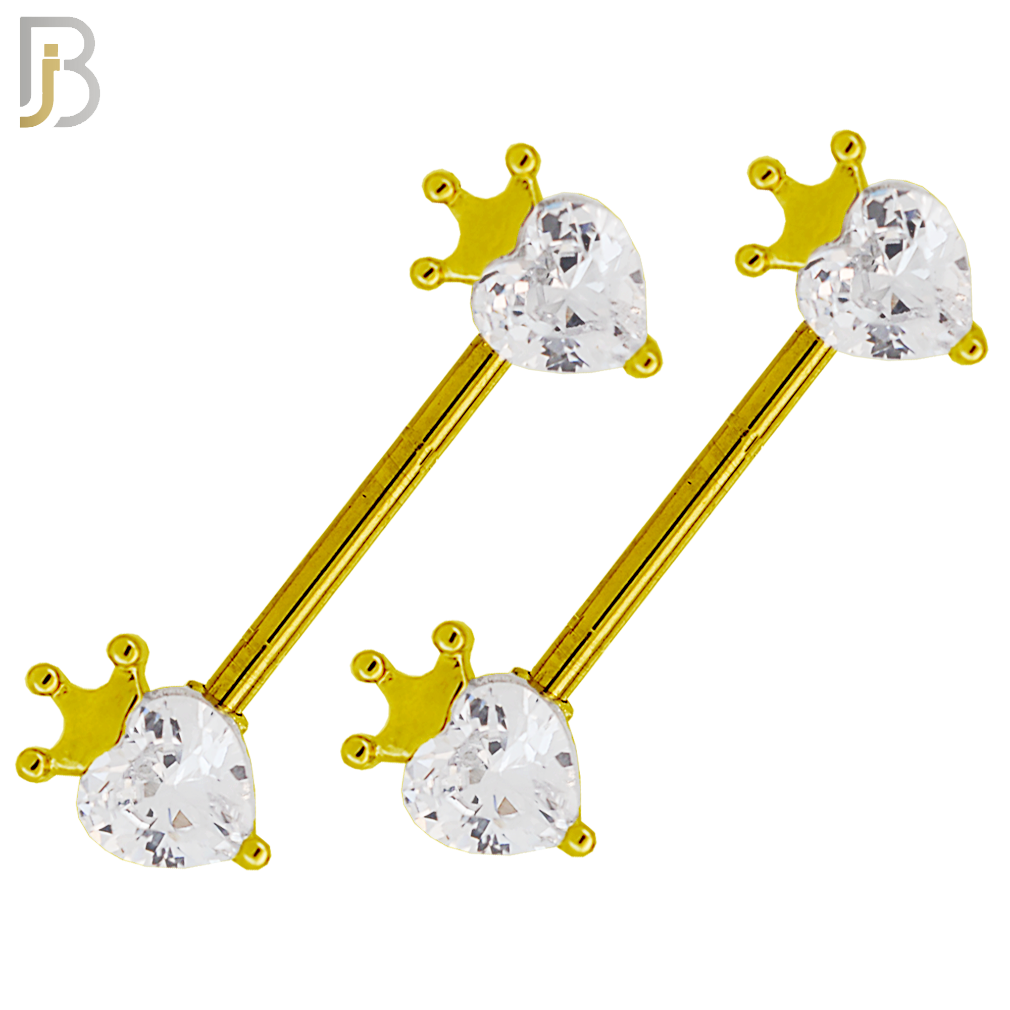 316L Surgical Steel Heart Shaped CZ with Crown Design Externally Threaded Nipple Ring Piercing Pair