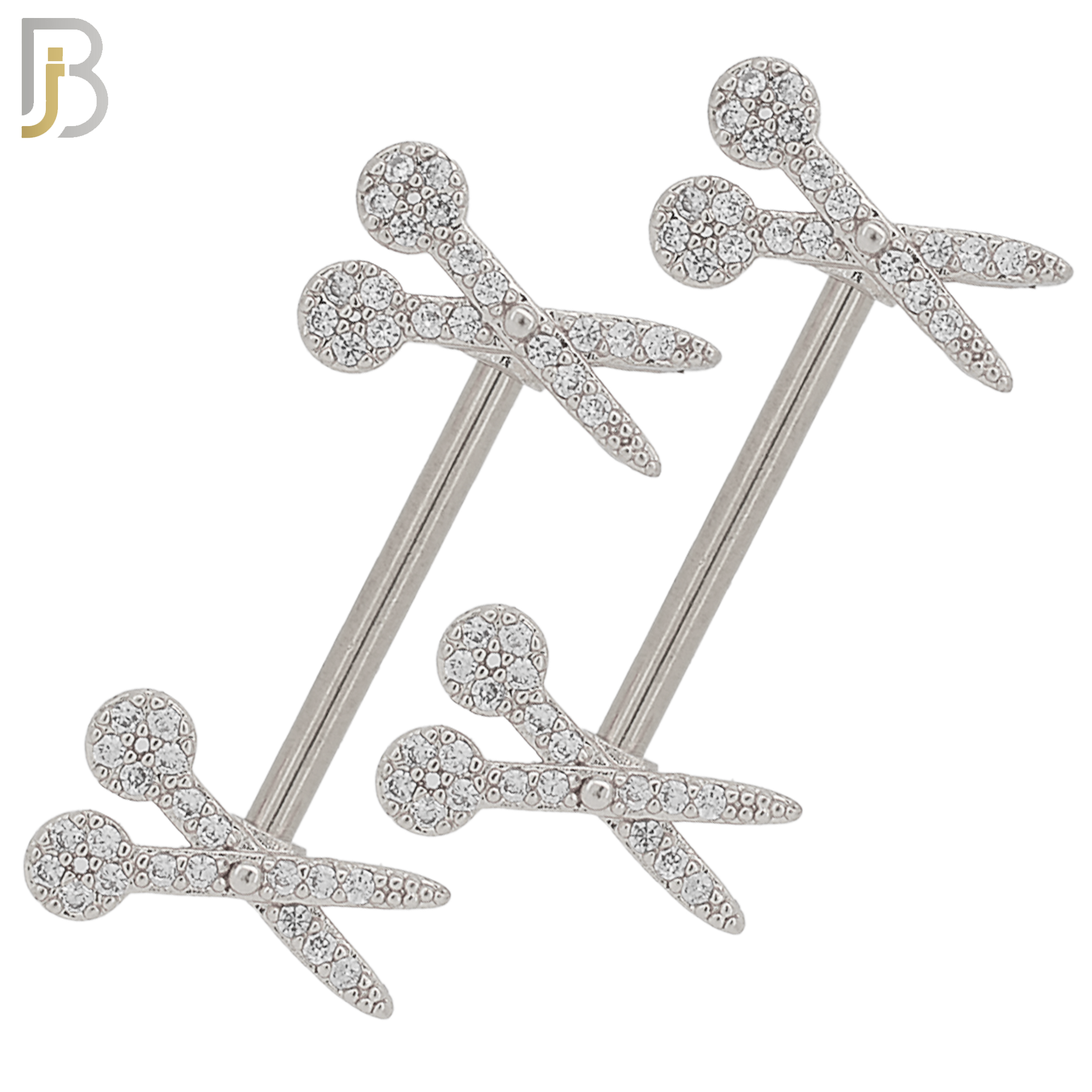 316L Surgical Steel Scissors Design with Multi Zircon Nipple Rings Pair