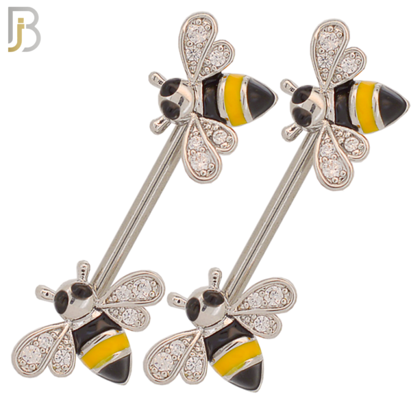 316L Surgical Steel Honey Bee Design Externally Threaded Nipple Rings (Sold as Pair)