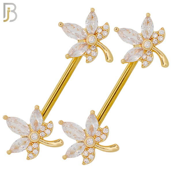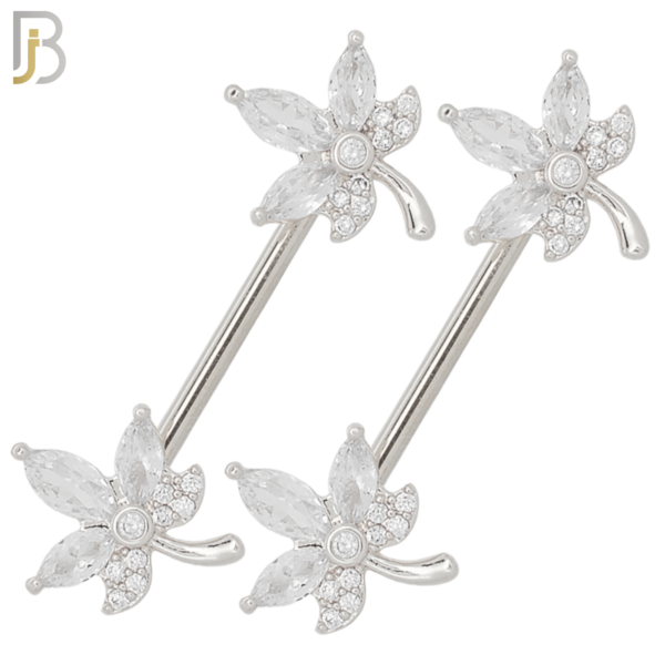 316L Surgical Steel Leaf with CZ Design Externally Threaded Nipple Rings (Sold as Pair)