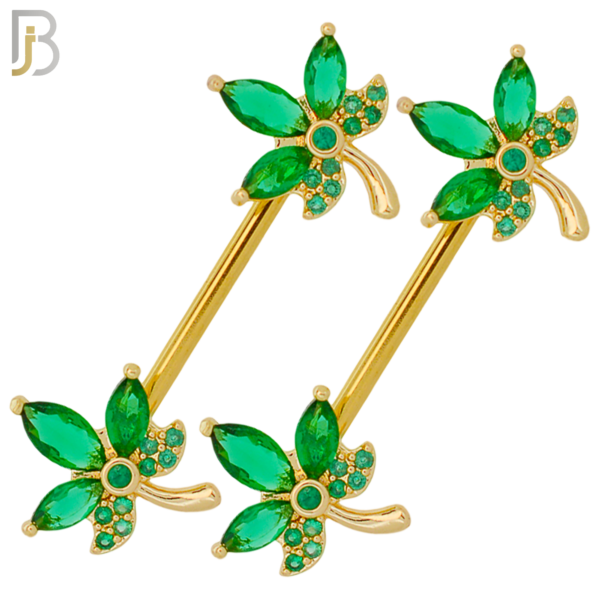 NP63- 316L Surgical Steel Leaf with CZ Design Externally Threaded Nipple Rings (Sold as Pair)