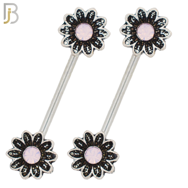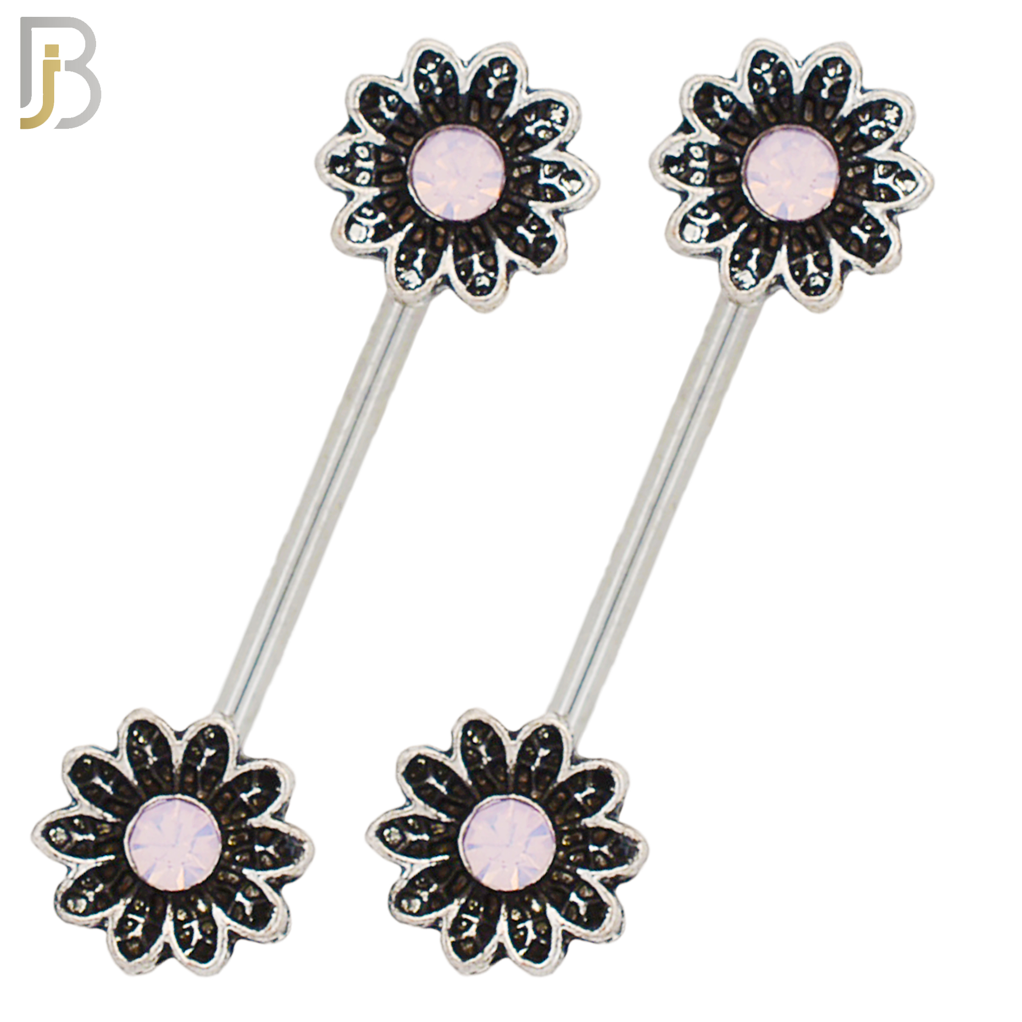 316L Surgical Steel Flower with Pink Center Zircon Nipple Ring