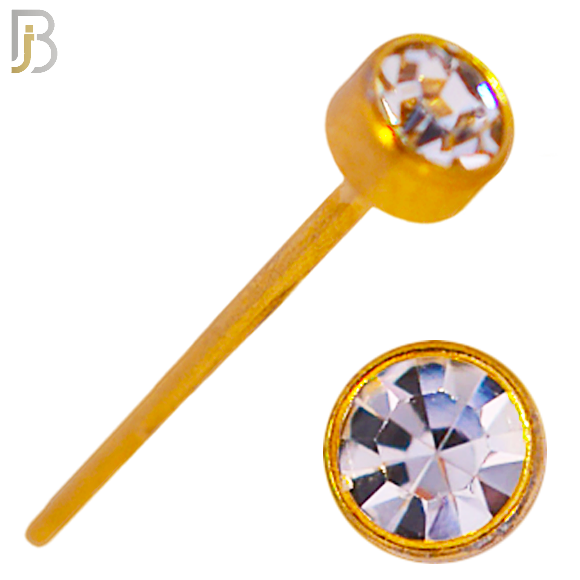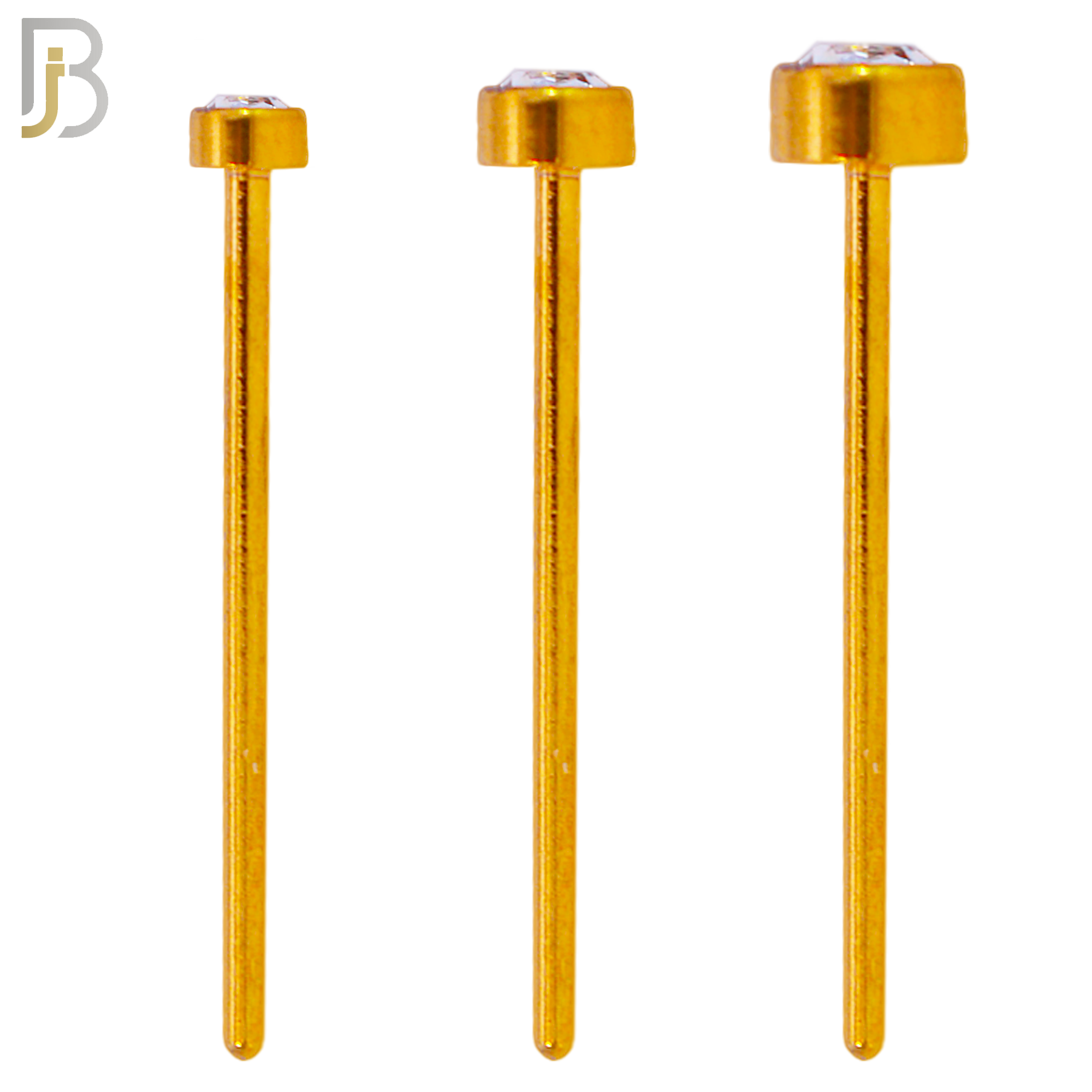 316L Surgical Steel Gold Plated Nose Stud Bezel Set Zircon Round Nose Ring