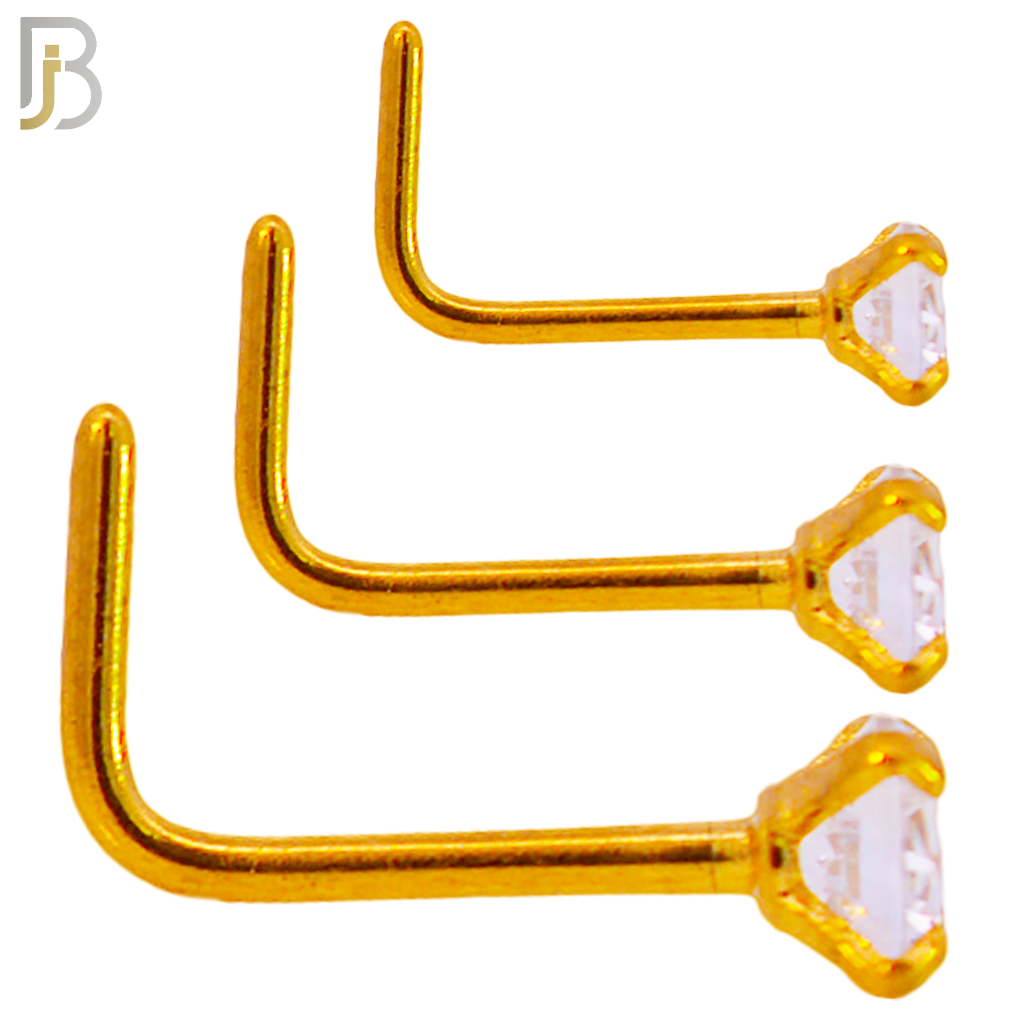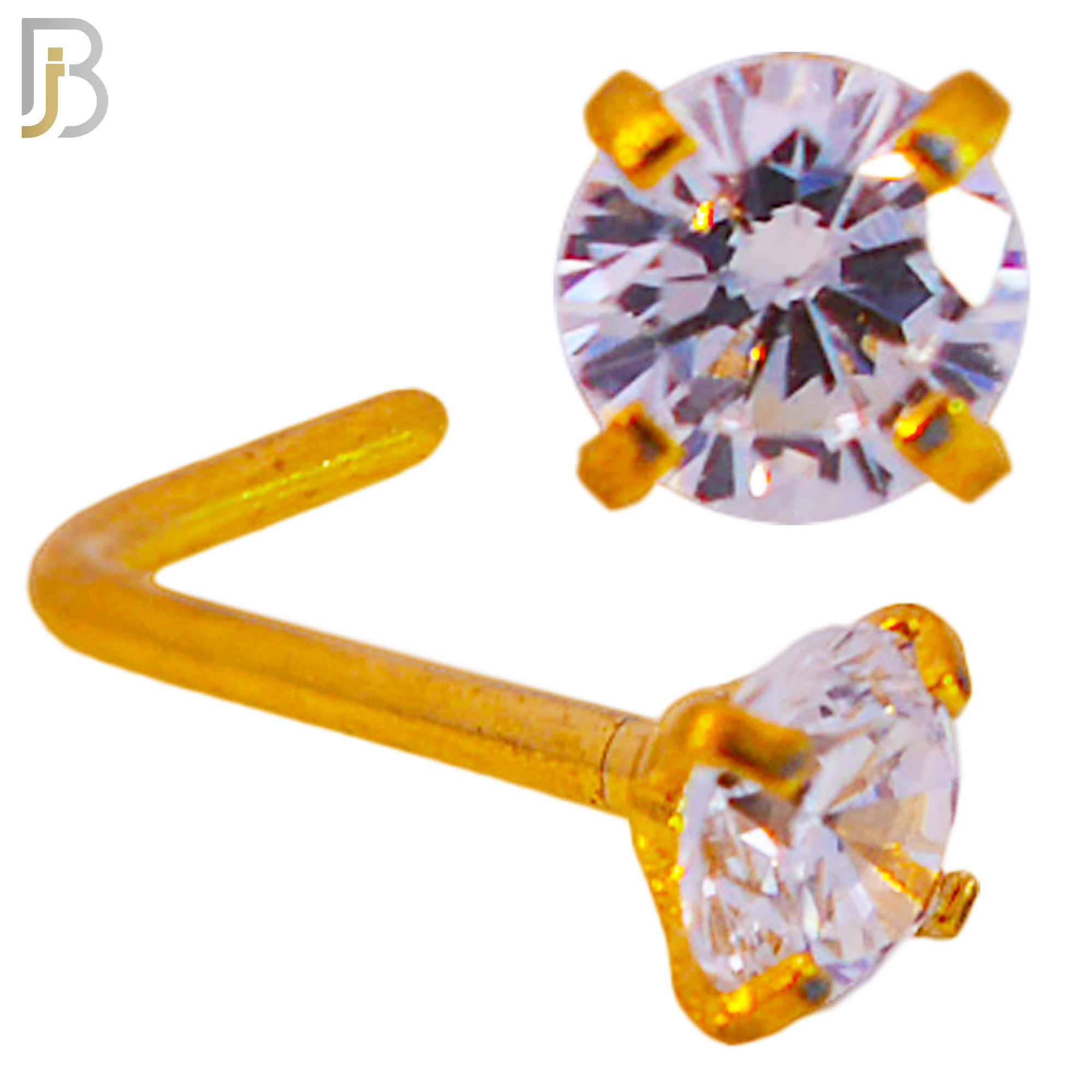NR10G – 316L Surgical Steel Gold Plated Nose L-Shape Prong Set Zircon Round Nose Ring (PACK OF 6)