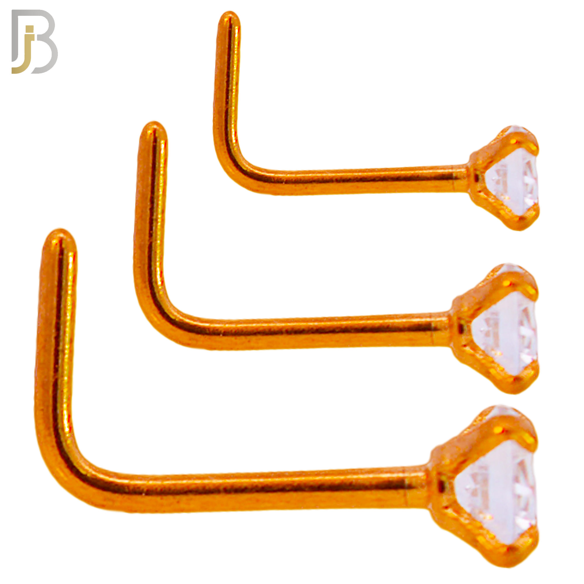 316L Surgical Steel Rose Gold Plated Nose L-Shape Prong Set Zircon Round Nose Ring