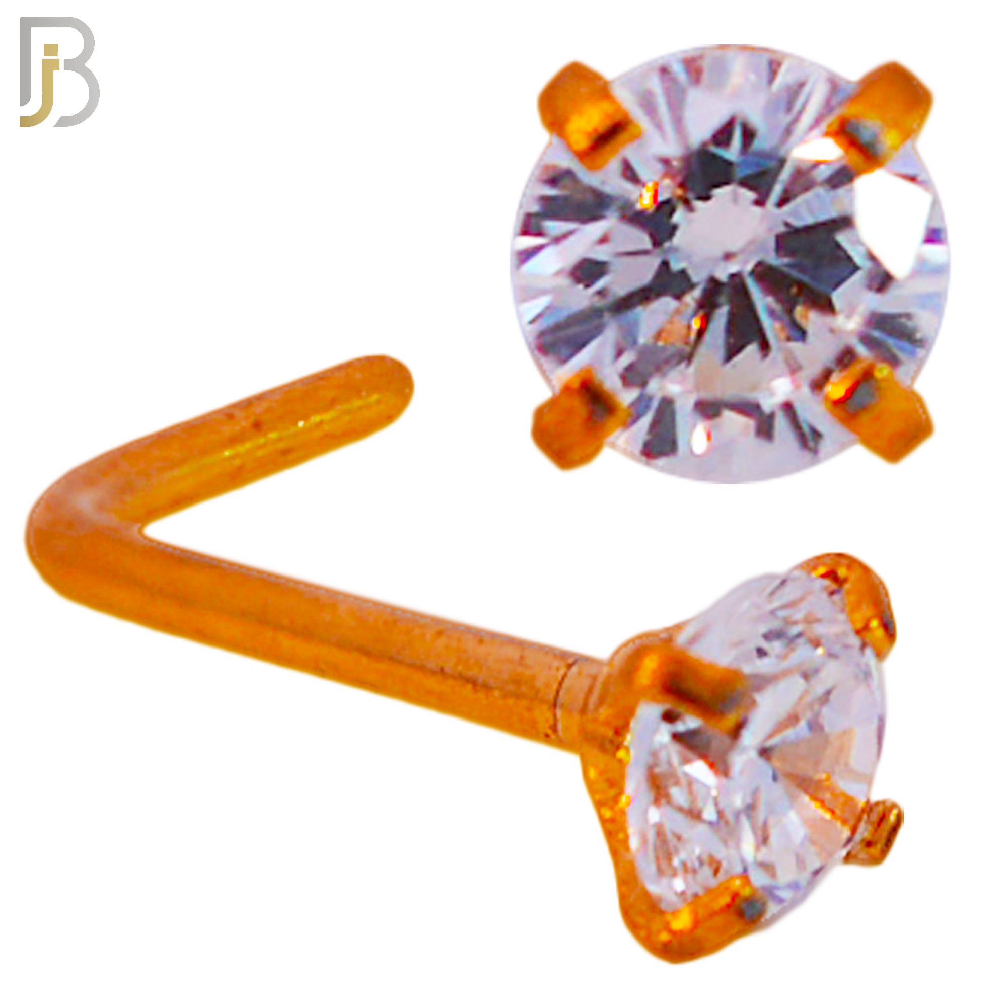 NR10R – 316L Surgical Steel Rose Gold Plated Nose L-Shape Prong Set Zircon Round Nose Ring (PACK OF 6)
