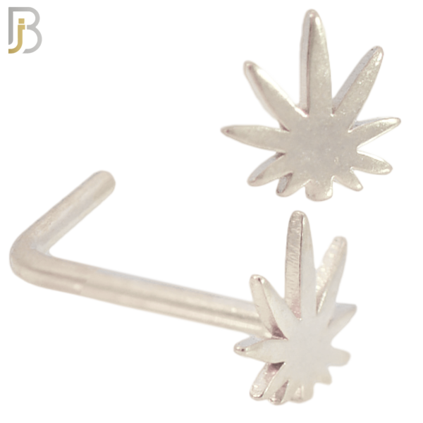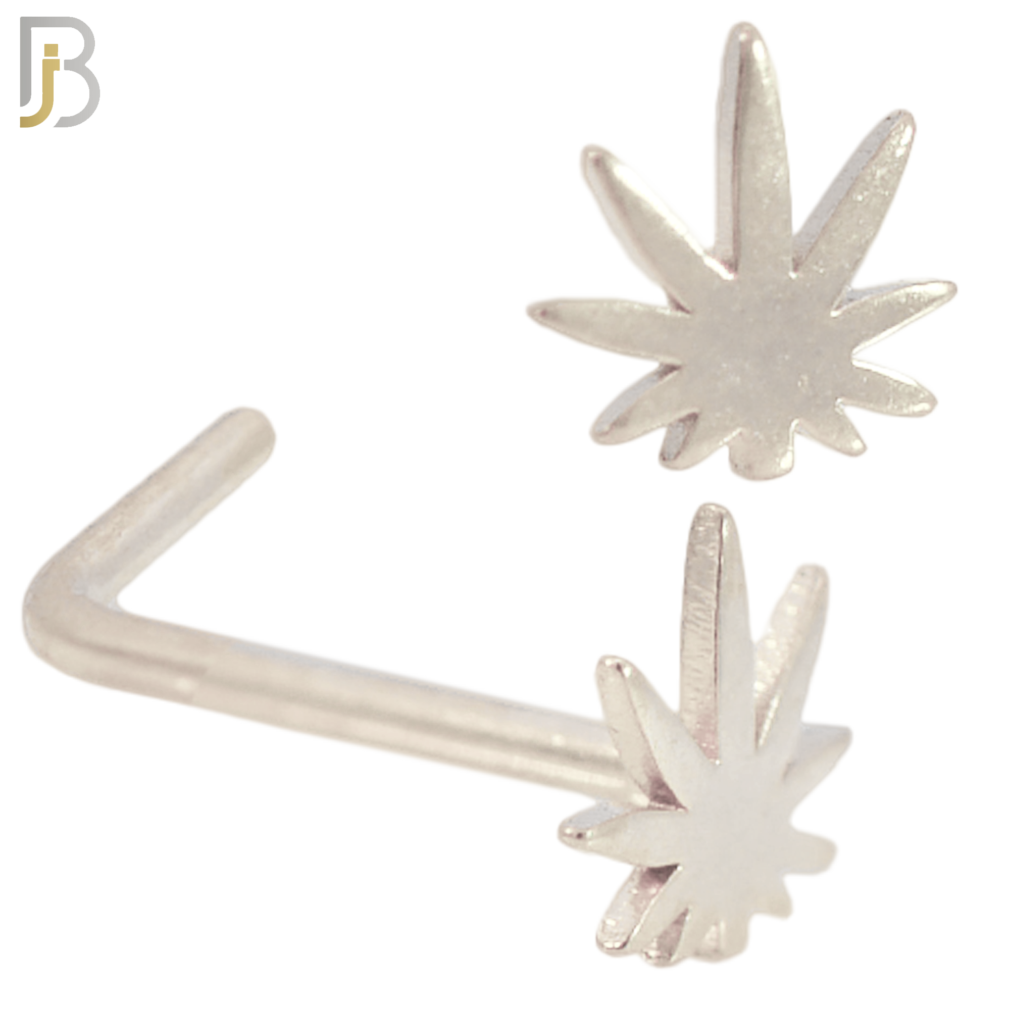 316L Surgical Steel Nose L Shape Plain Pot Marijuana Leaf Design
