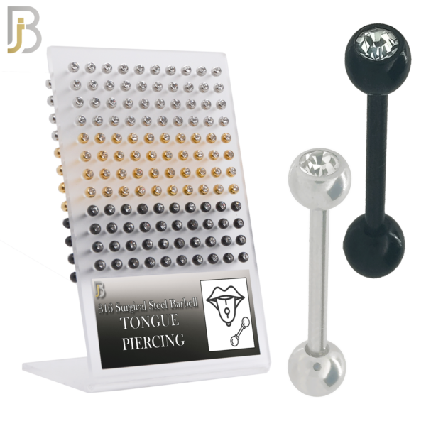 PK-BB05AC-1 – 316L Surgical Steel Plated Barbell with Bezel Setting Ball  Clear Zircon Screw External Threaded Pack of 120