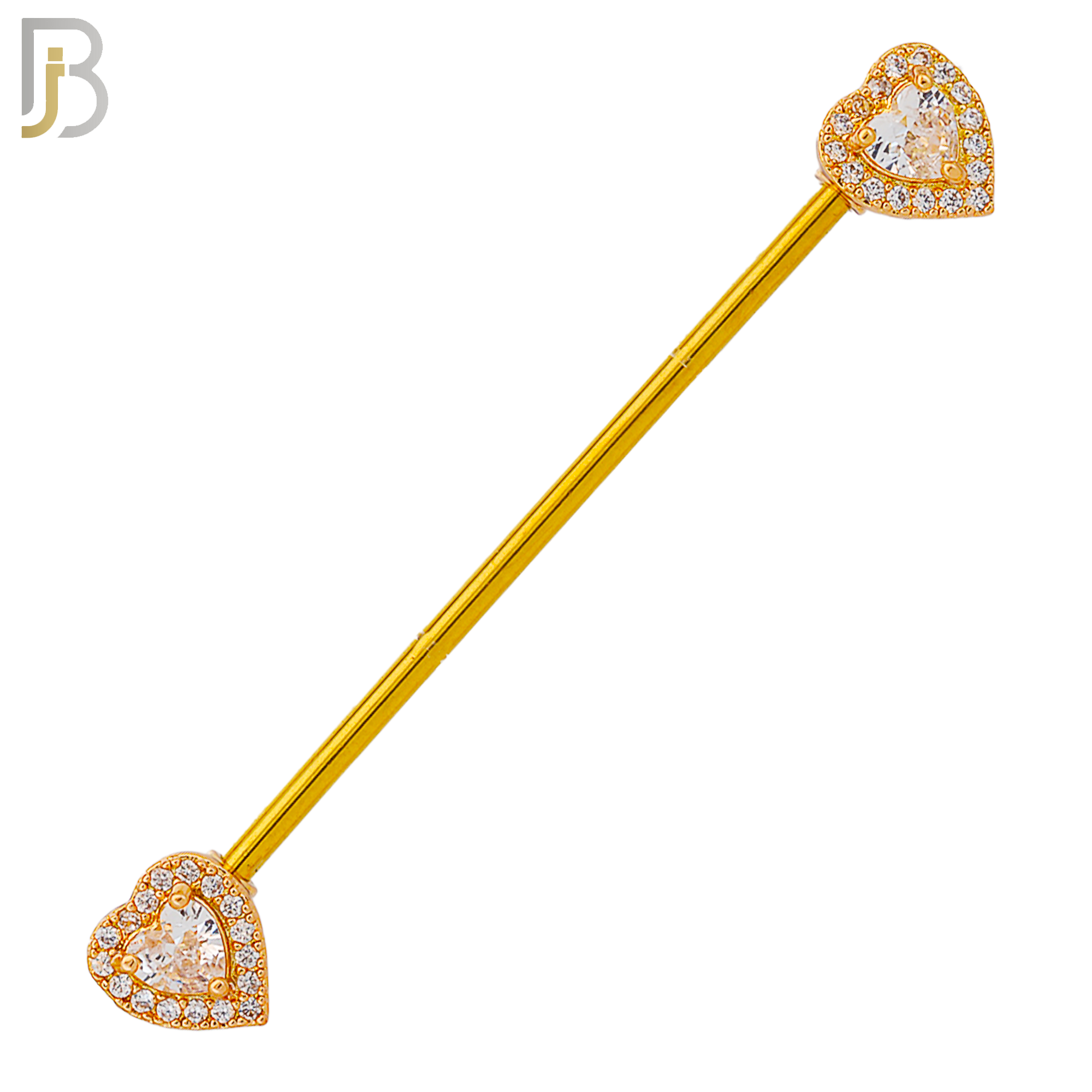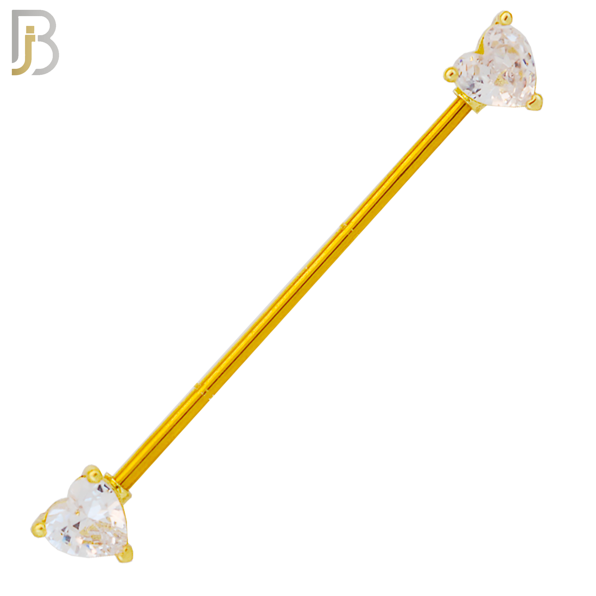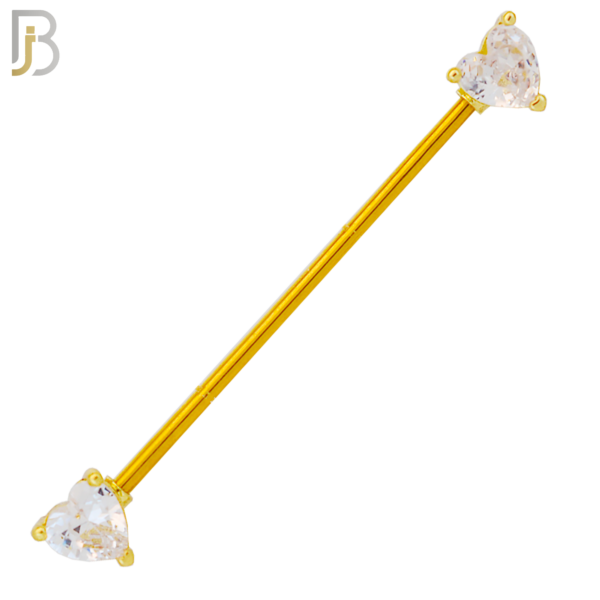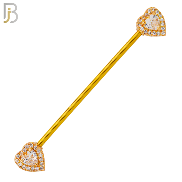 PK-BB08M – 316 Surgical Steel Industrial Barbell with Heart Shaped CZ Design