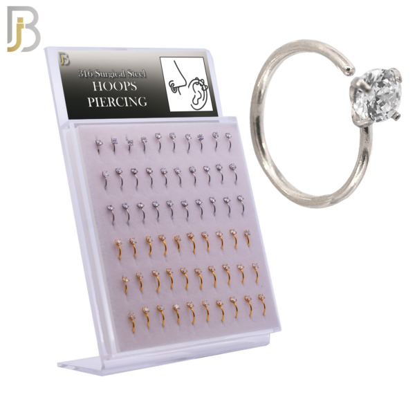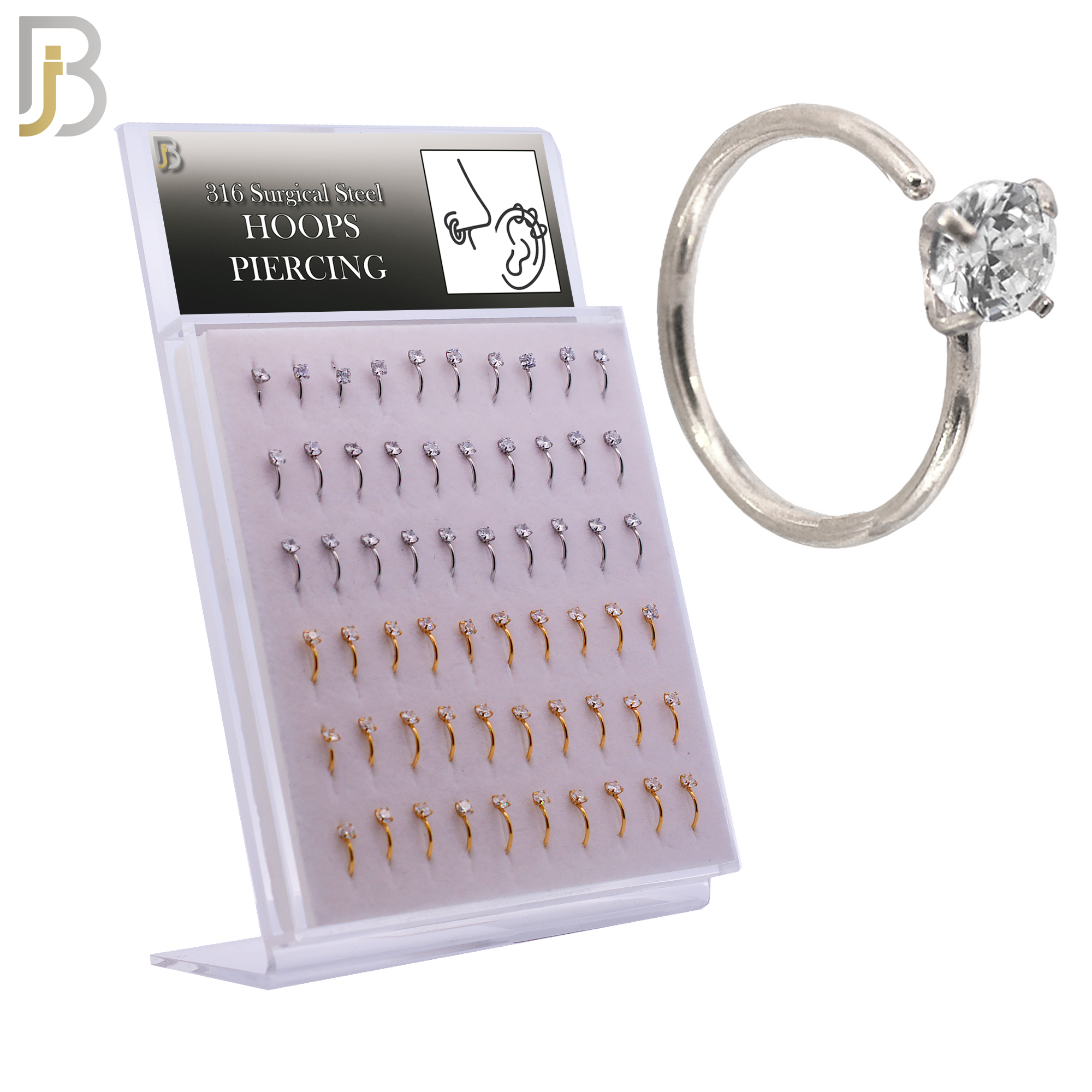 316 Surgical Steel Single CZ in Prong Setting Nose Hoop – Pack of 60 pcs