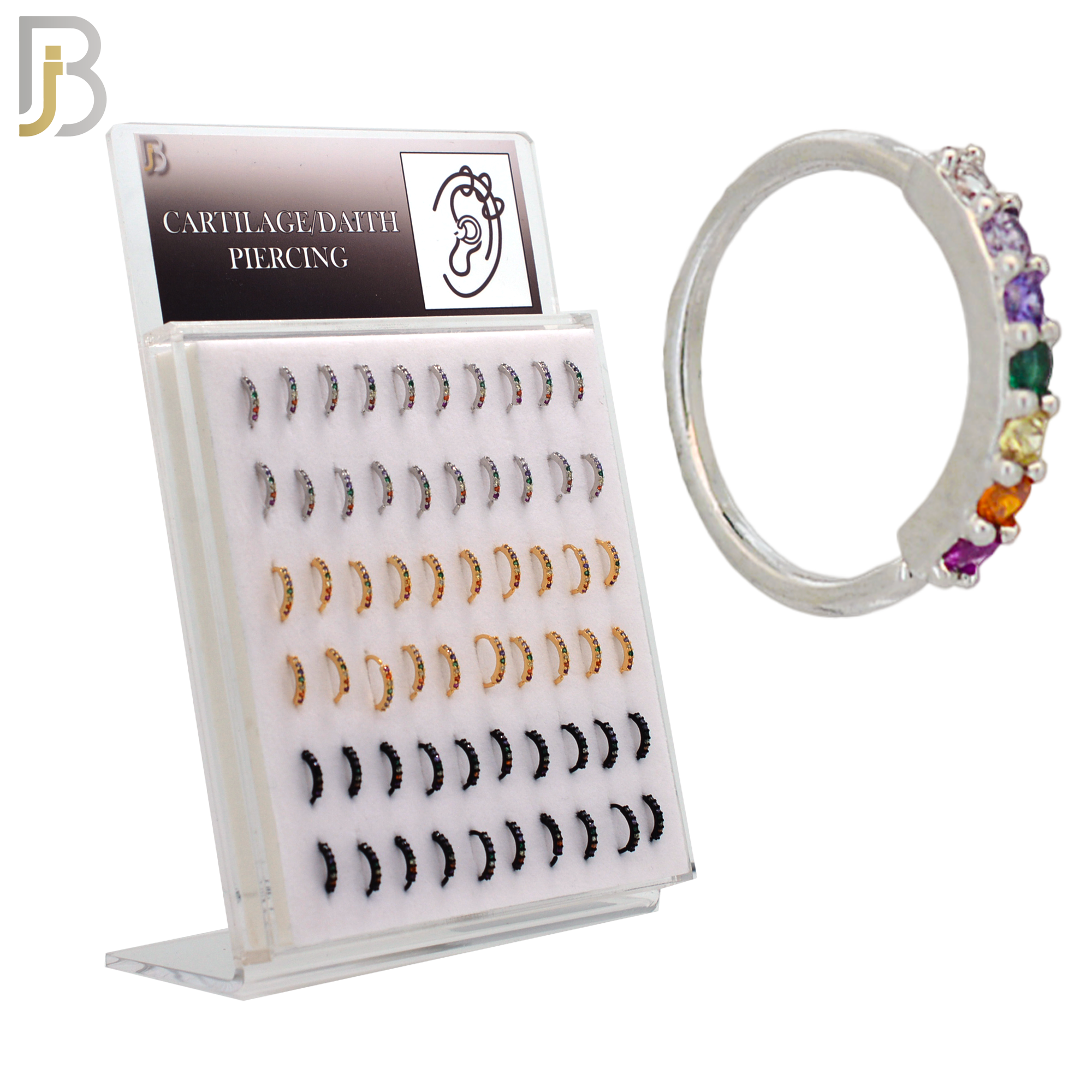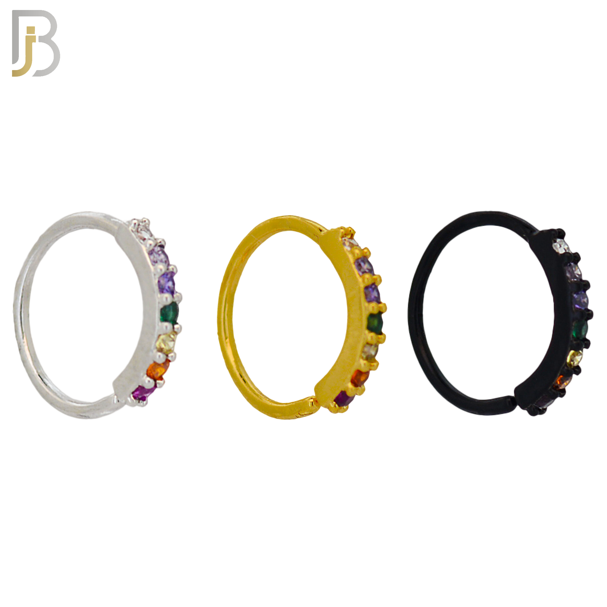PK-CT12 – Brass Nose / Cartilage Hoop Ring with 7 1.5mm Prong Set Rainbow Zircon