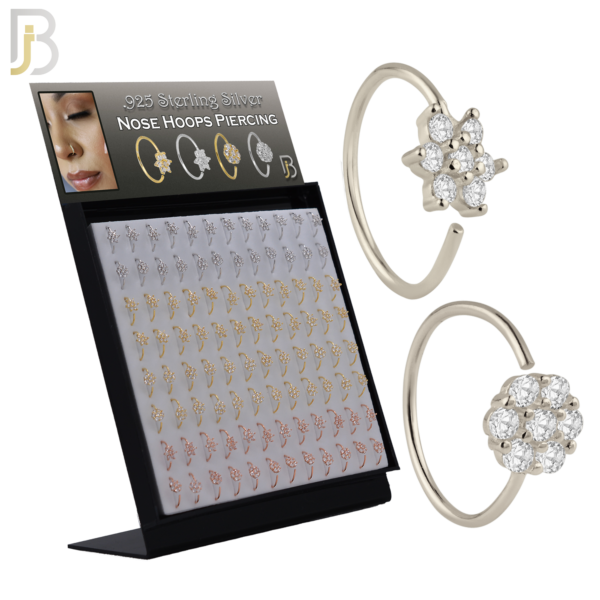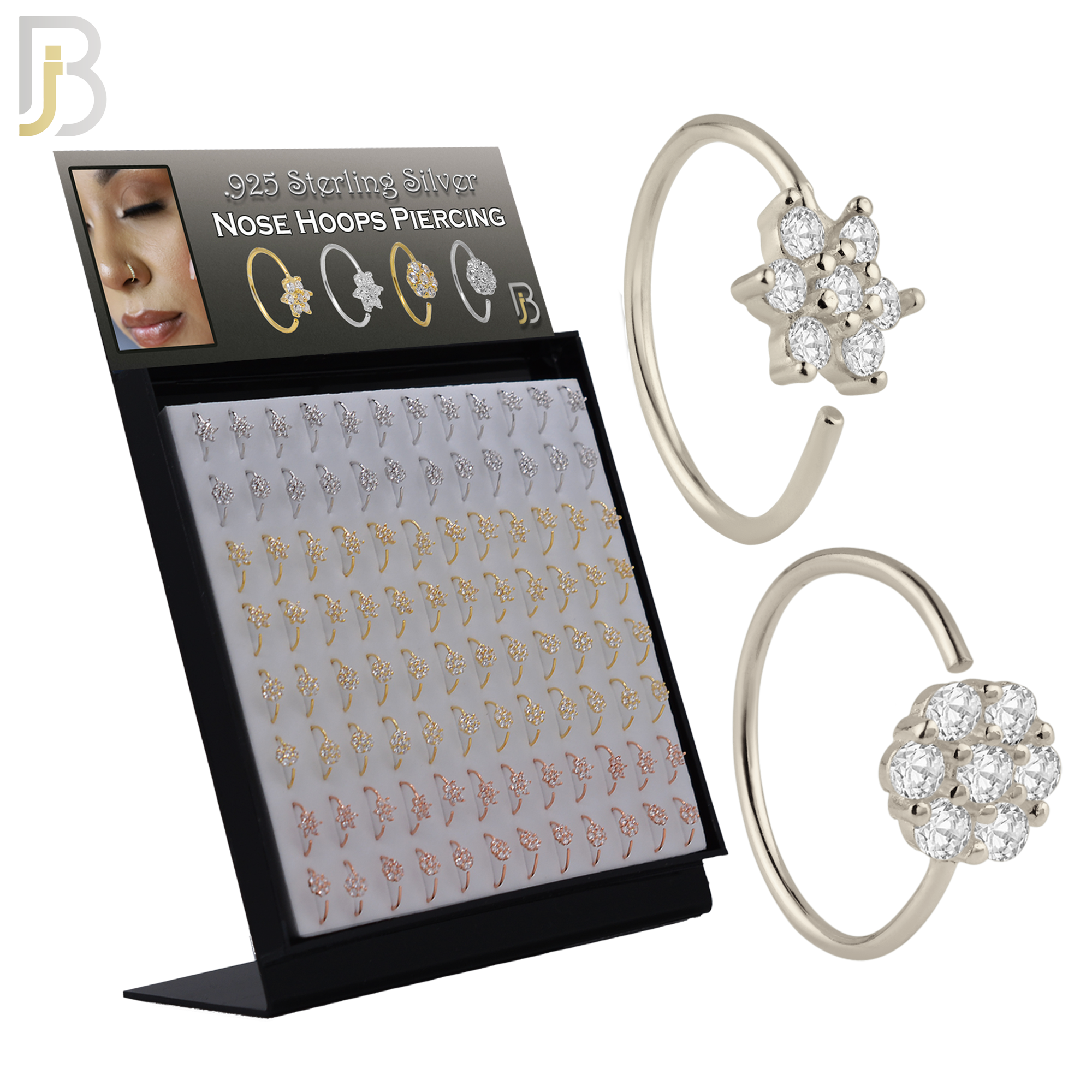 925 Sterling Silver Flower Design Nose Hoops 22g Thick 8mm wide Pack of 96