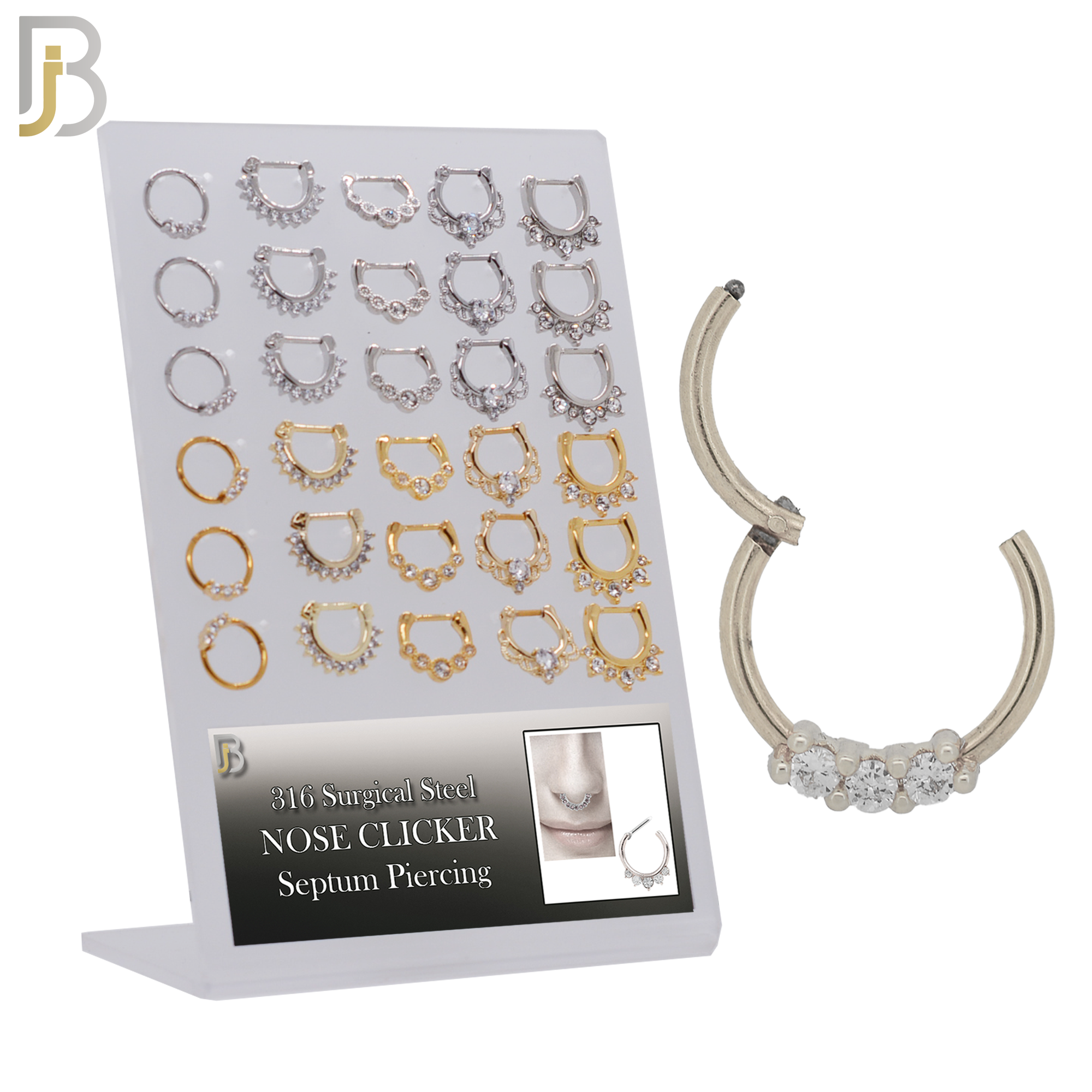 316 Surgical Steel Nose Clicker for Septum Piercing. Mixed Designs Pack of 30