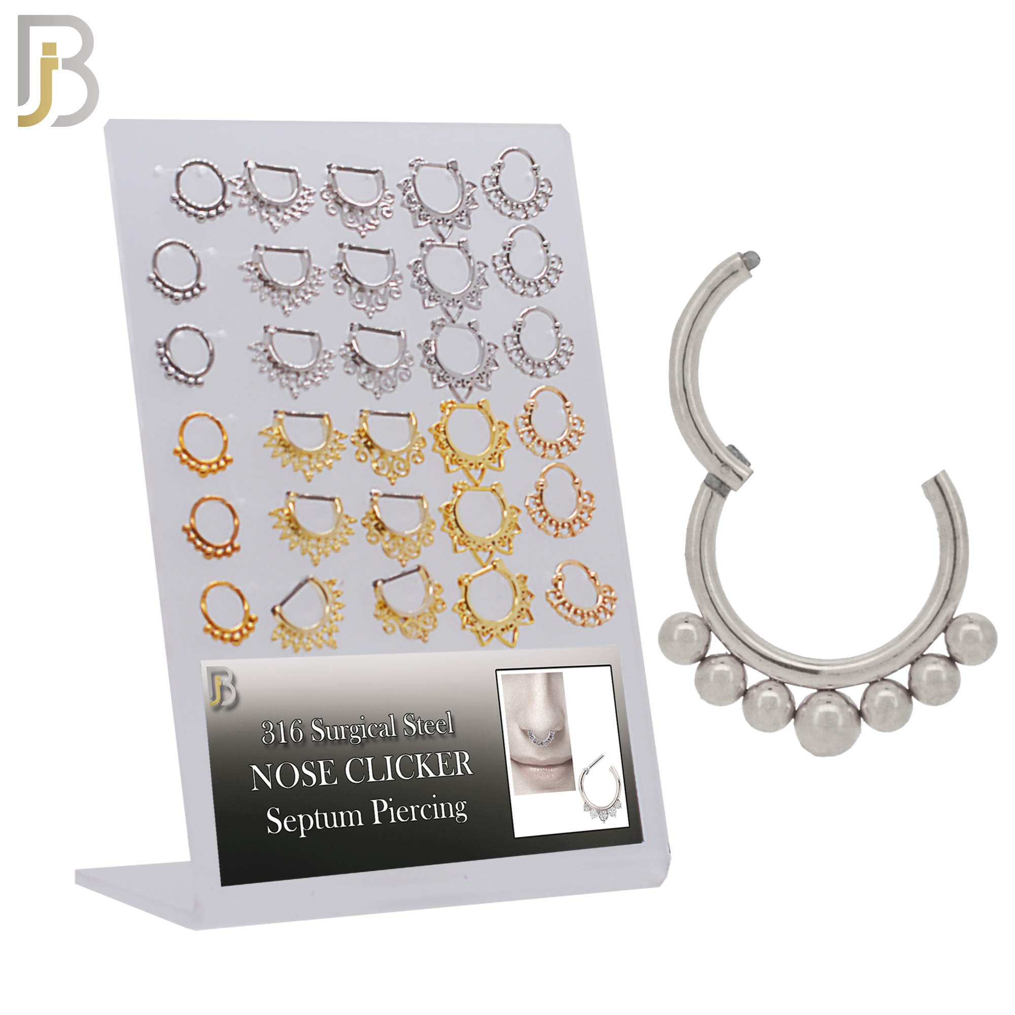 316 Surgical Steel Nose Clicker for Septum Piercing. Mixed Designs Pack of 30