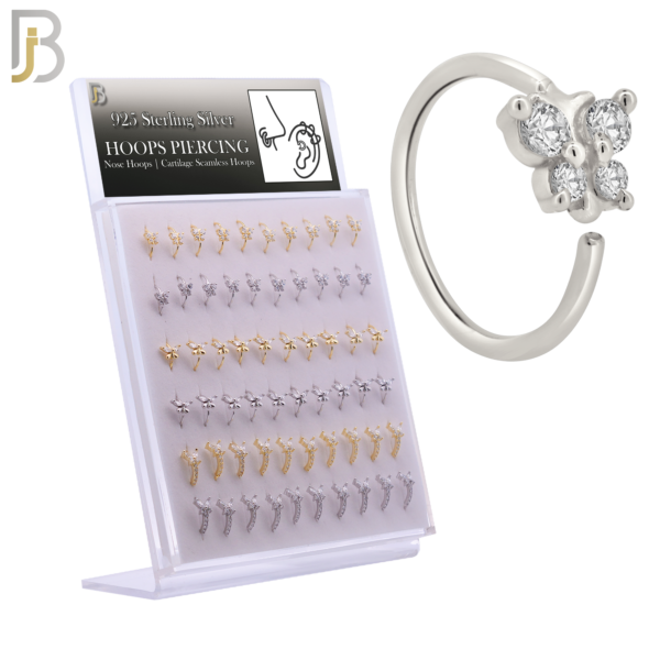 925 Sterling Silver Three Styles Butterfly Nose Hoops – Pack of 60