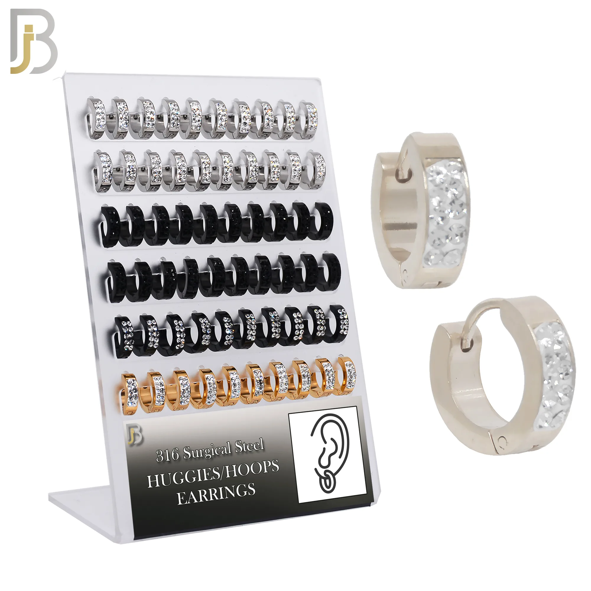 316L Surgical Steel Huggies with Multi Two Rows of Zircon on One Side Pack of 30 Pairs