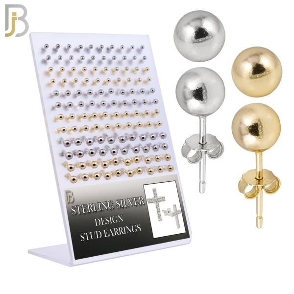 .925 Sterling Silver Rhodium & Gold Plated Push Back Plain Ball Earring Stud Pack of 60 Pair