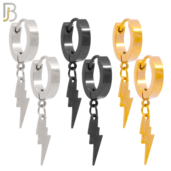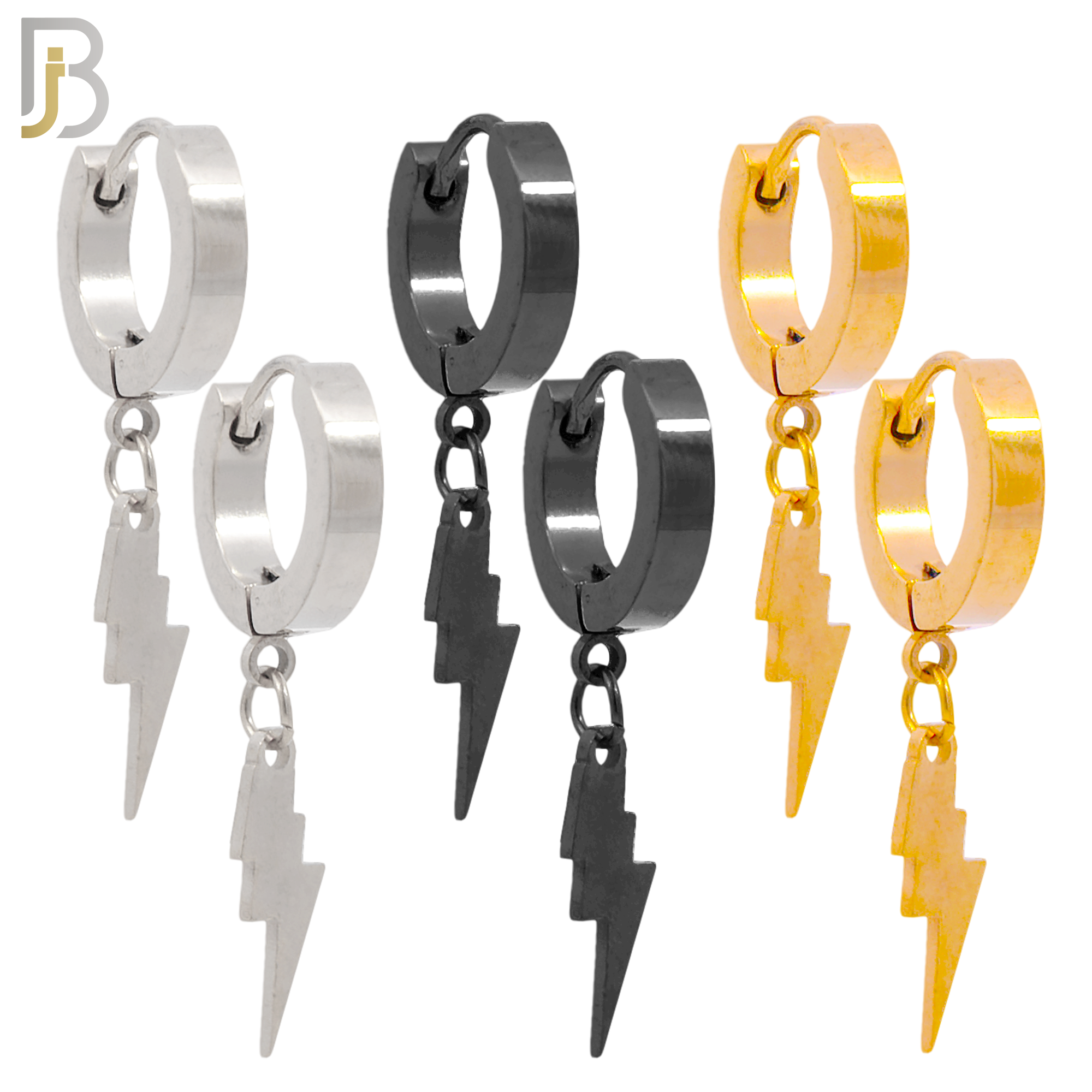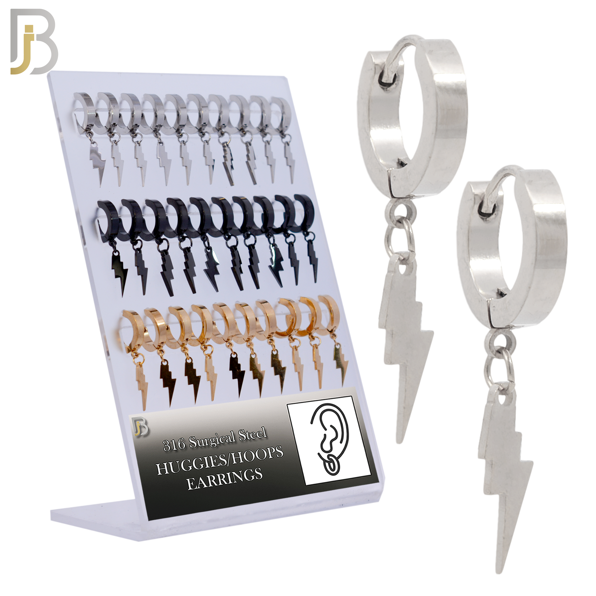 316L Stainless Steel Dangling Plain Lightning Bolt Huggies Earrings – Pack of 15 Pairs