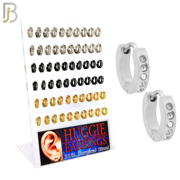 316L Surgical Steel 5 Round CZ in Plush Setting Huggies Earrings Pack of 30 Pairs (2 x 7)