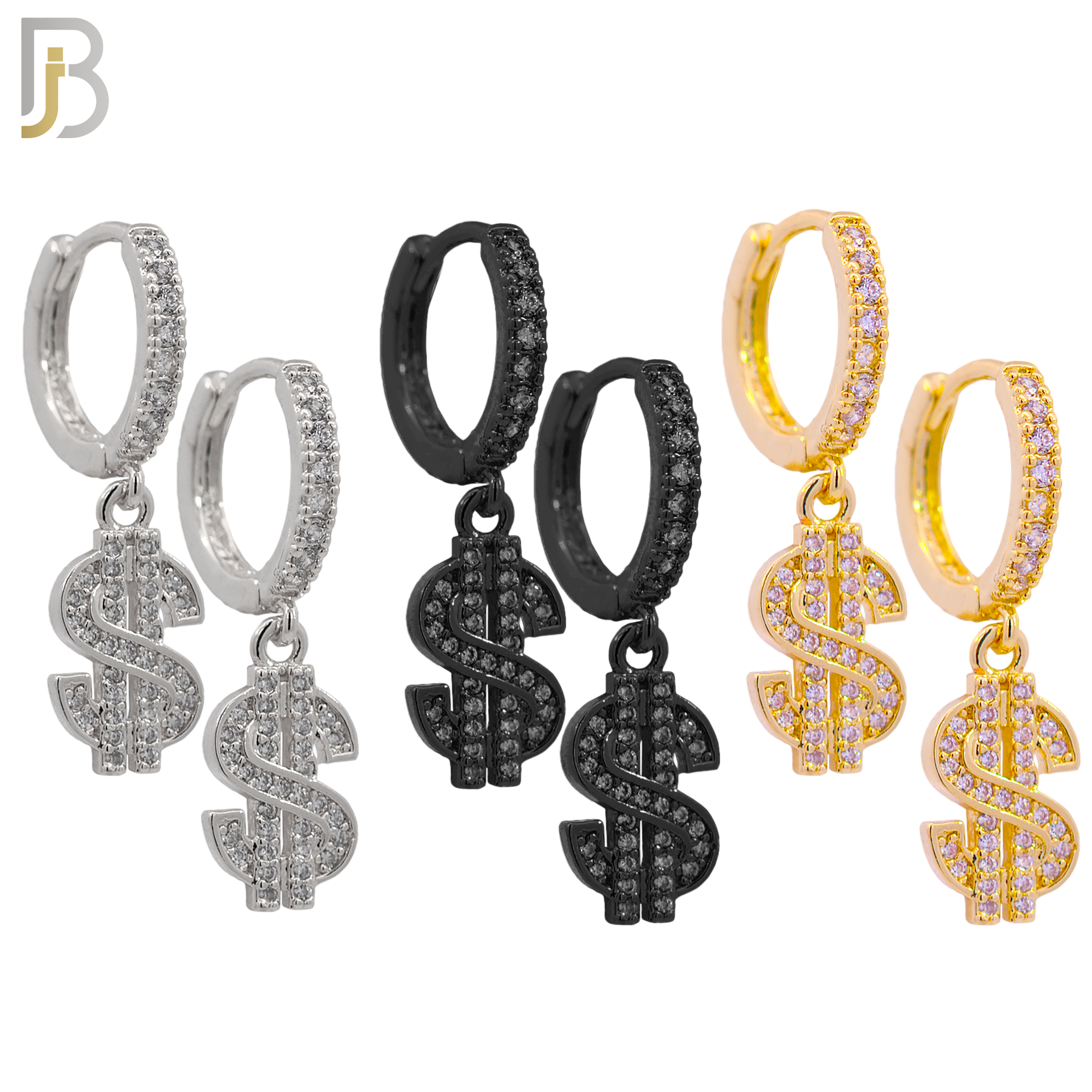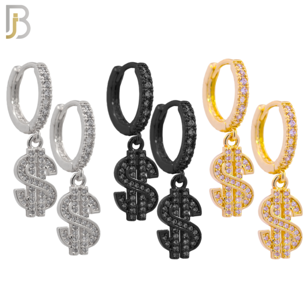 PK-ES167- 316L Surgical Steel Dangling Dollar Sign with Zircon Huggies Earrings – Pack of 15 Pairs
