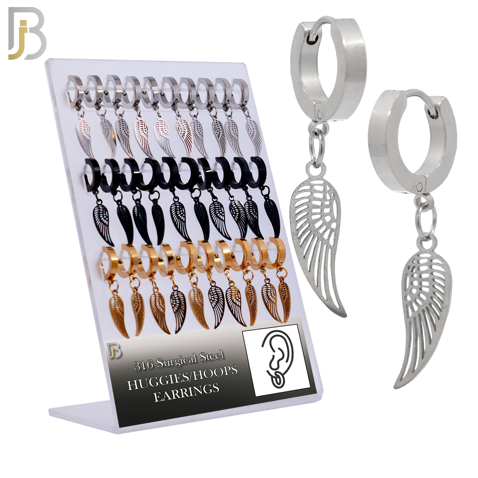 316L Surgical Steel Dangling Wings Huggies Earrings – Pack of 15 Pairs