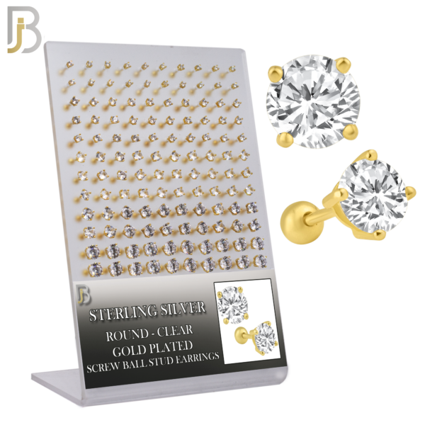.925 Sterling Silver Earring Stud with Screw Ball Backing, Casting Prong Setting and Round Clear Zircon