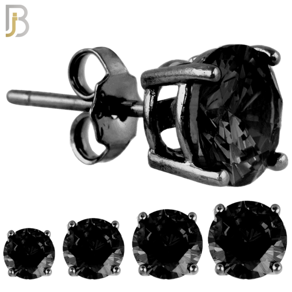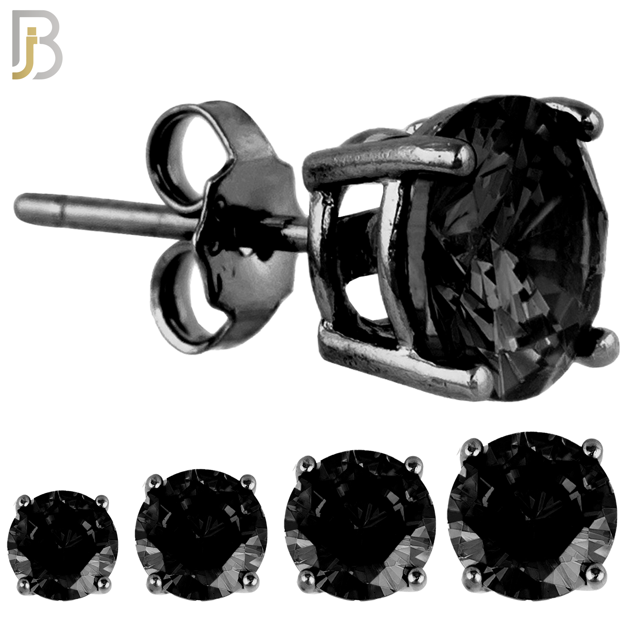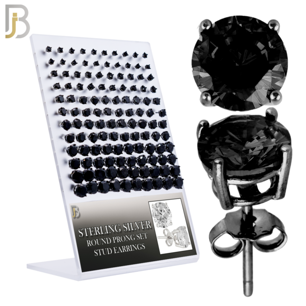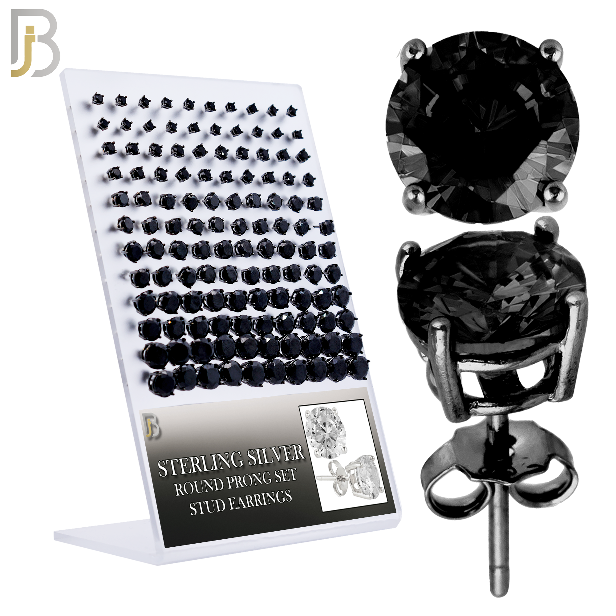 925 Sterling Silver Black Plated Push Back Earring Stud Casting Round Prong Setting Black Zircon Pack of 60 Pairs