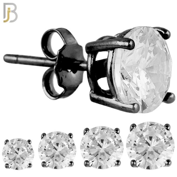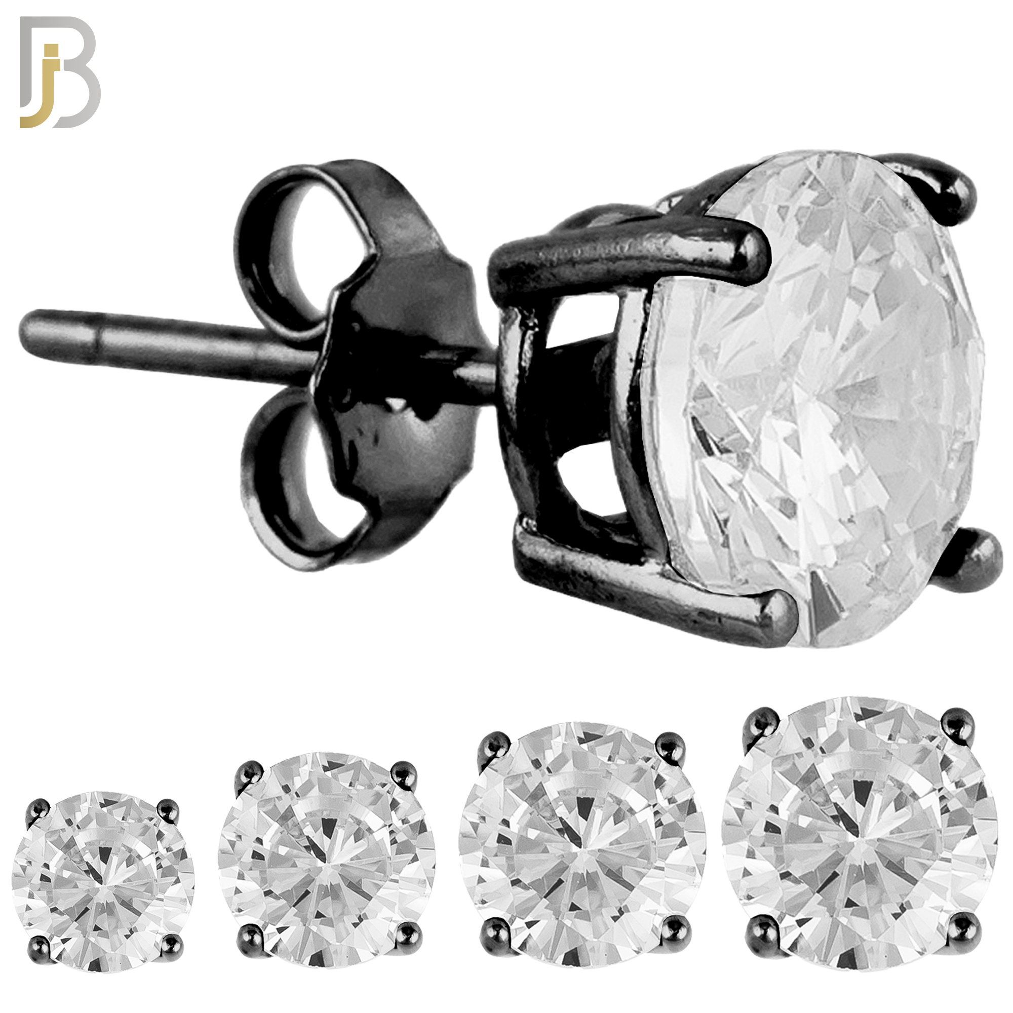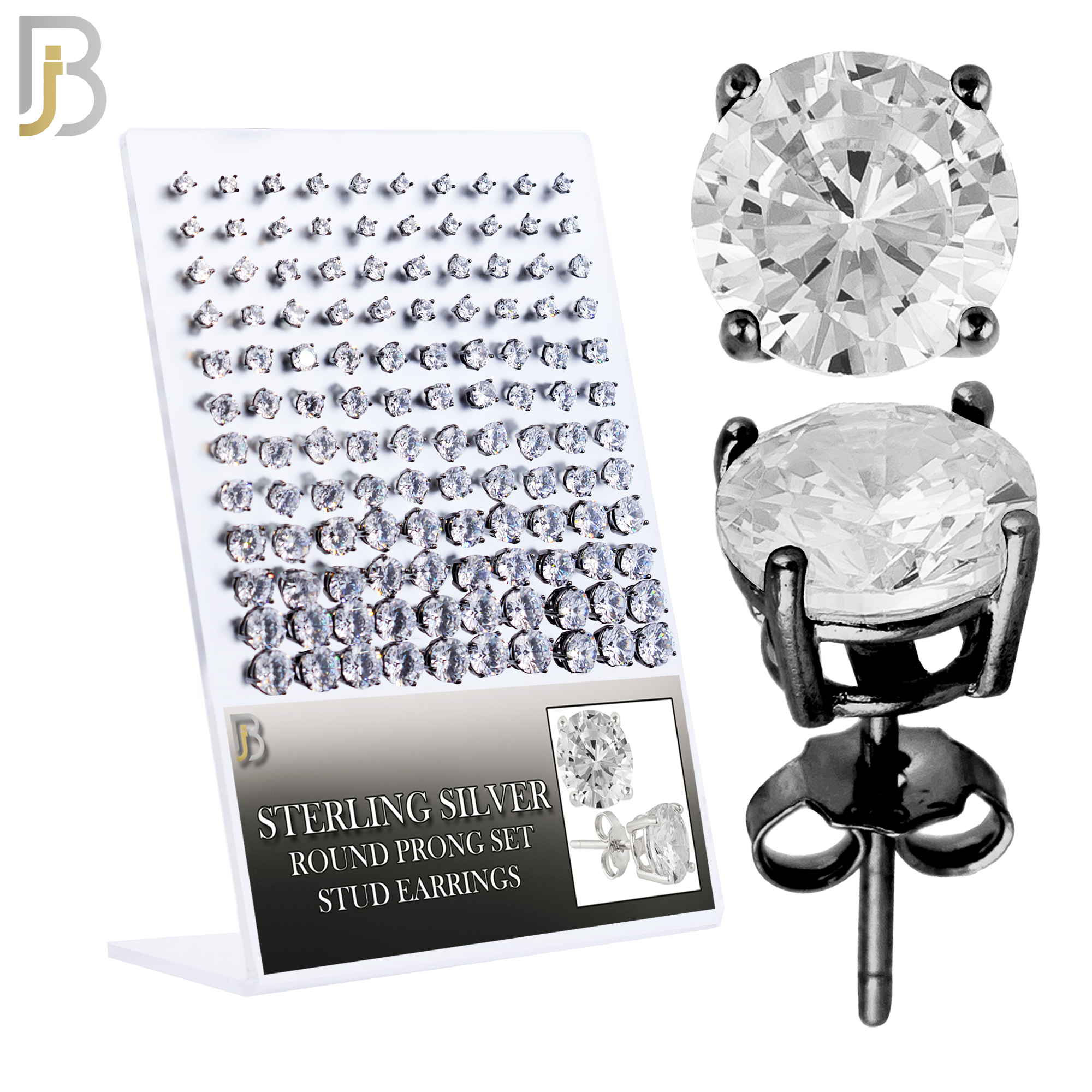 925 Sterling Silver Black Plated Push Back Earring Stud Casting Round Prong Setting Clear Zircon Pack of 120