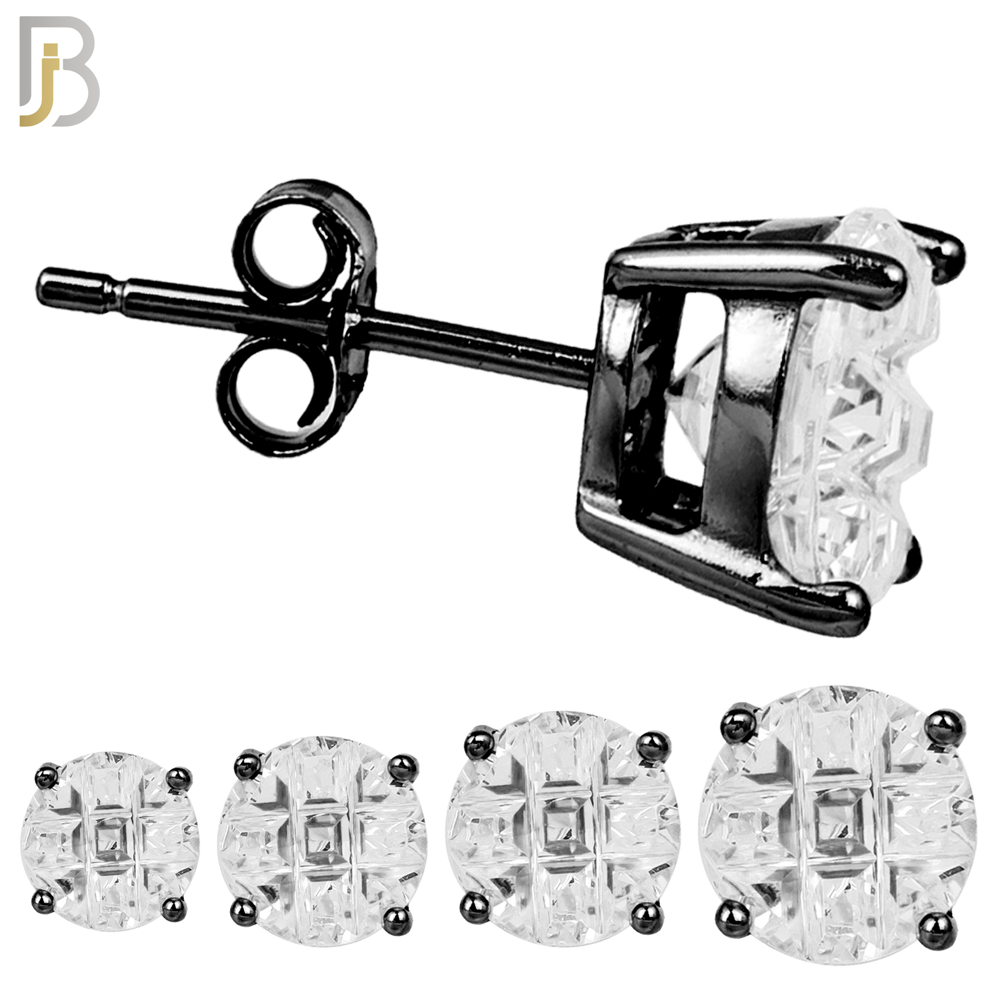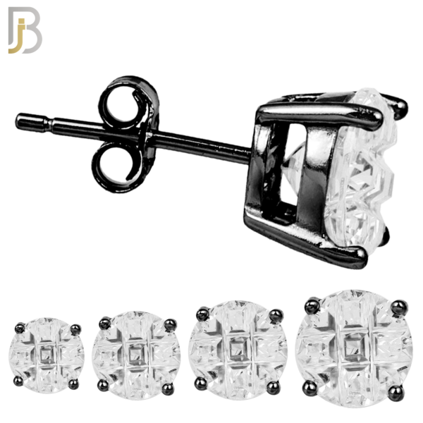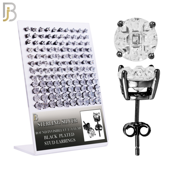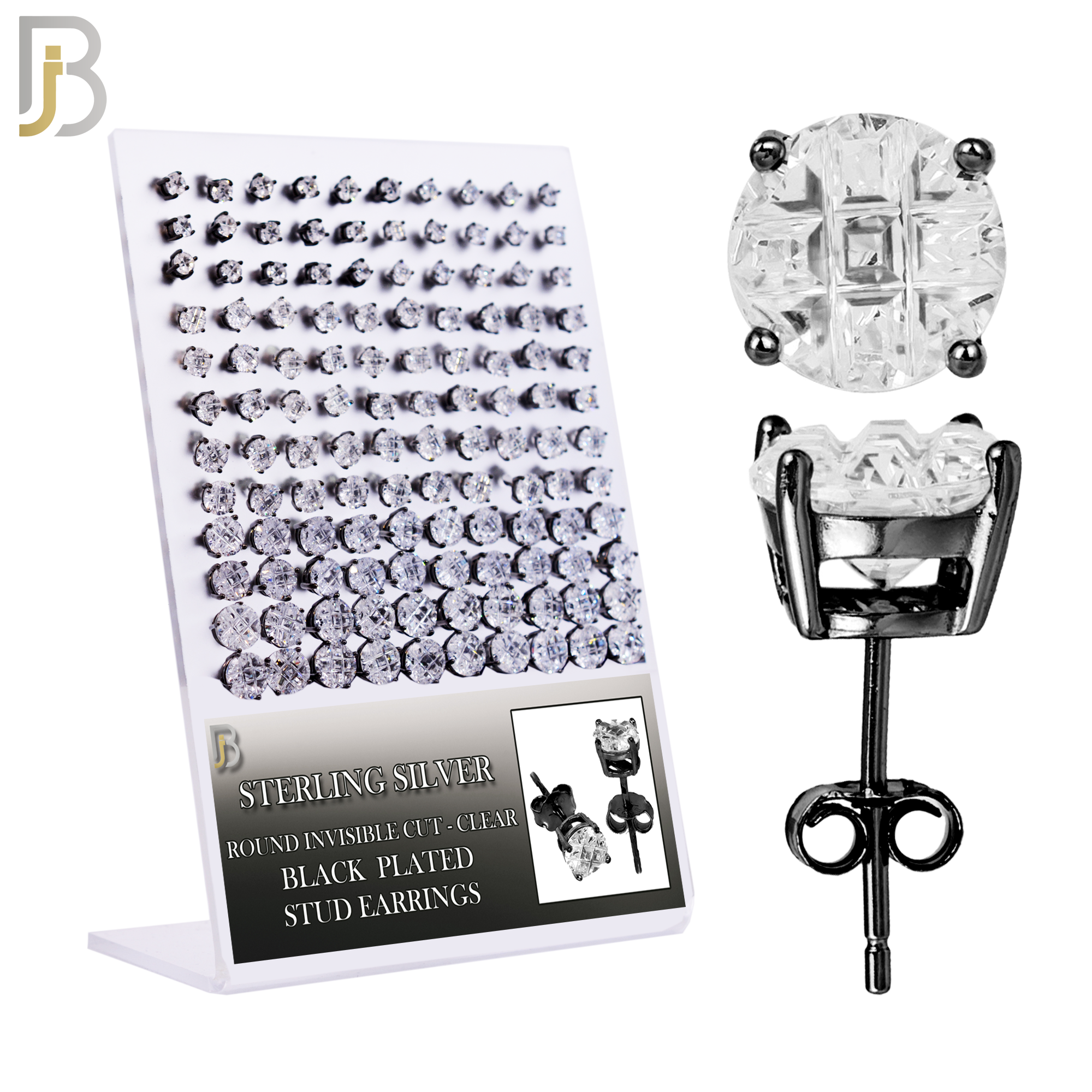 925 Sterling Silver Black Plated Push Back Earring Stud Casting Round Princess Invisible Cut Prong Setting Clear Zircon Pack of 60 Pairs