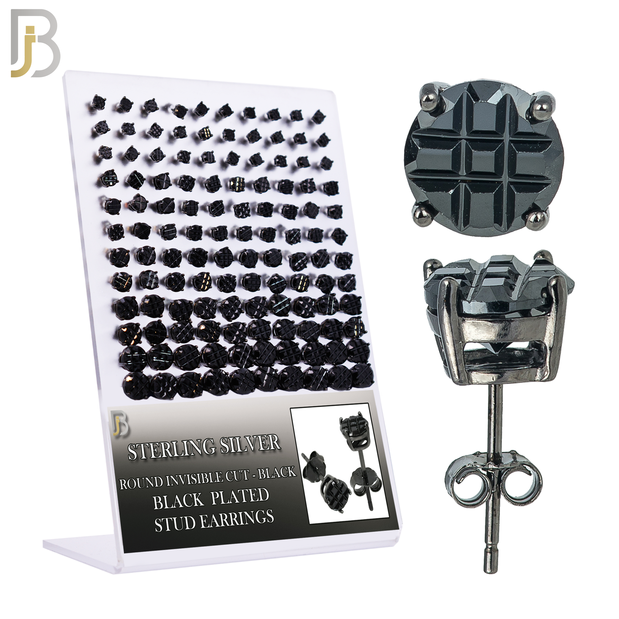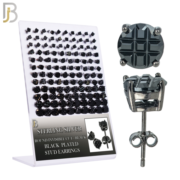 925 Sterling Silver Black Plated Push Back Earring Stud Casting Round Princess Invisible Cut Prong Setting Black Zircon Pack of 60 Pairs