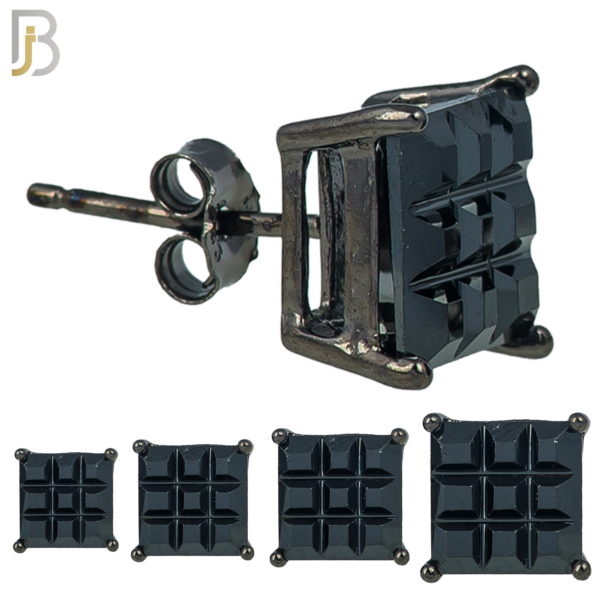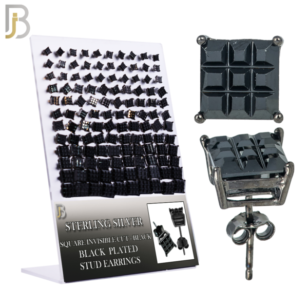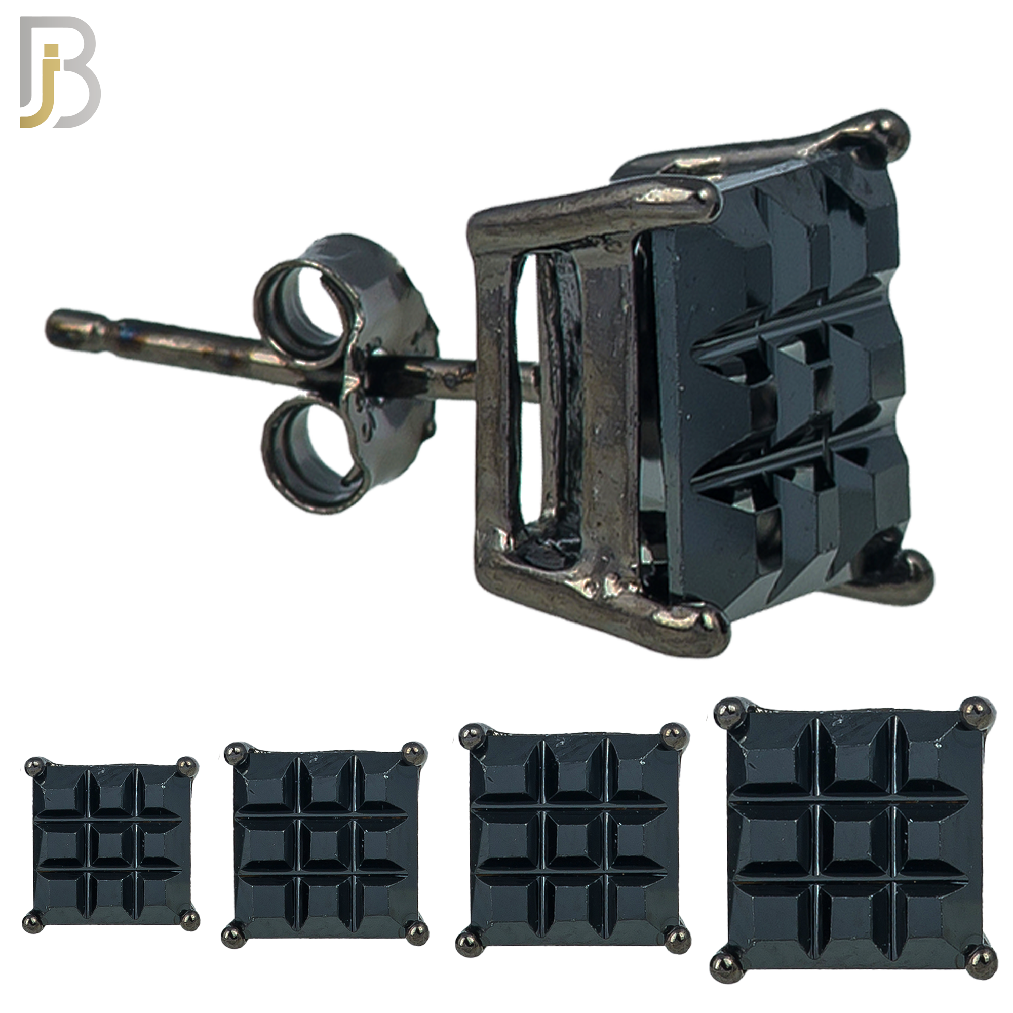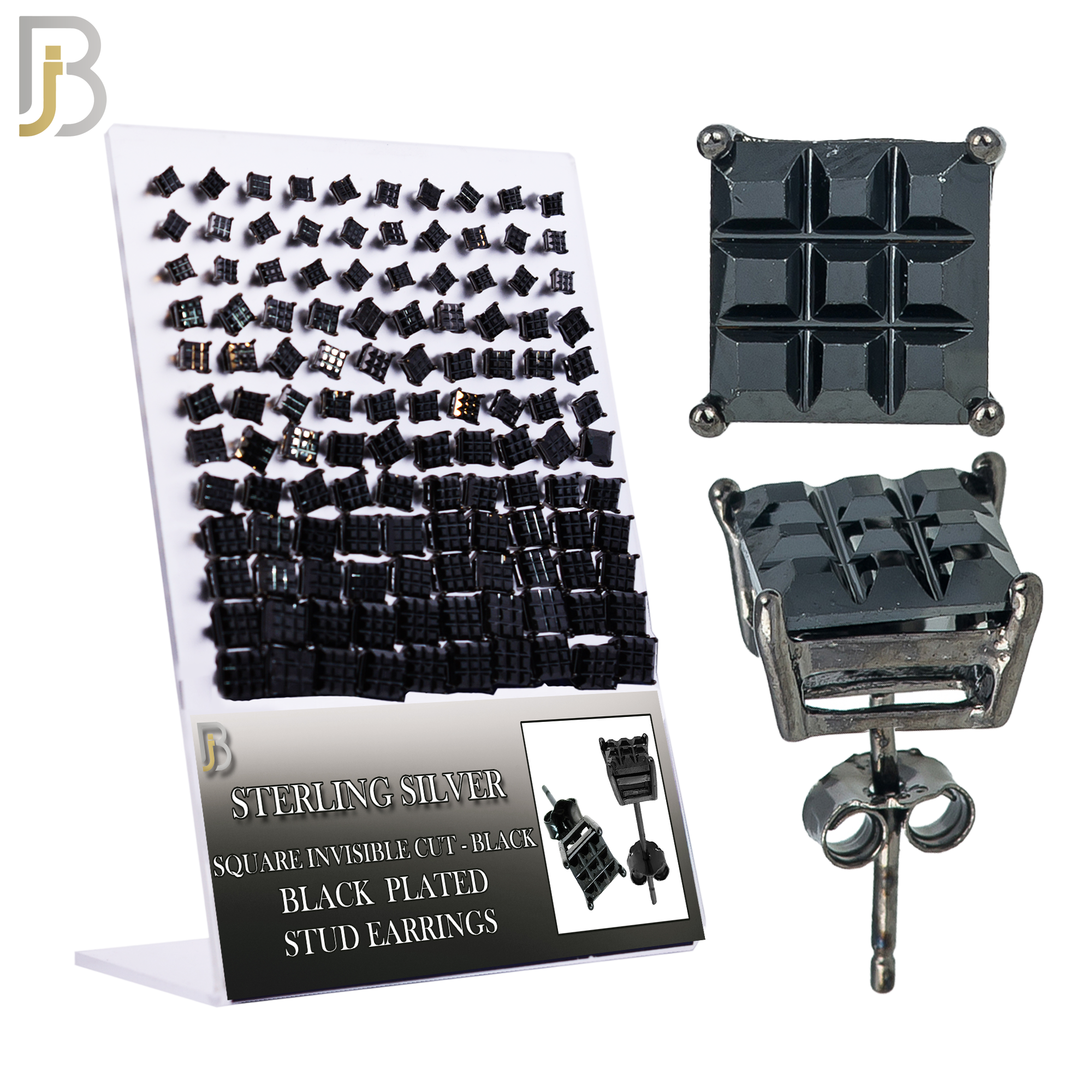 925 Sterling Silver Black Plated Push Back Earring Stud Casting Square Princess Invisible Cut Prong Setting Clear Zircon Pack of 60 Pairs