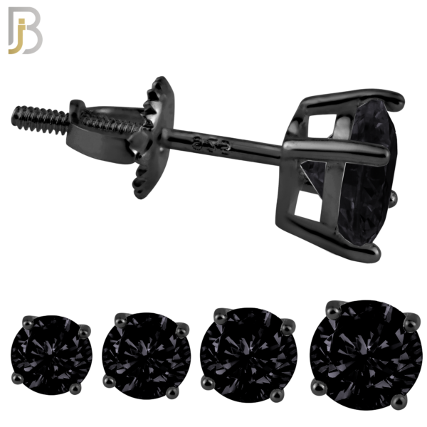 925 Sterling Silver Black Plated Screw Back Earring Stud Casting Round Prong Setting Black Zircon Pack of 60