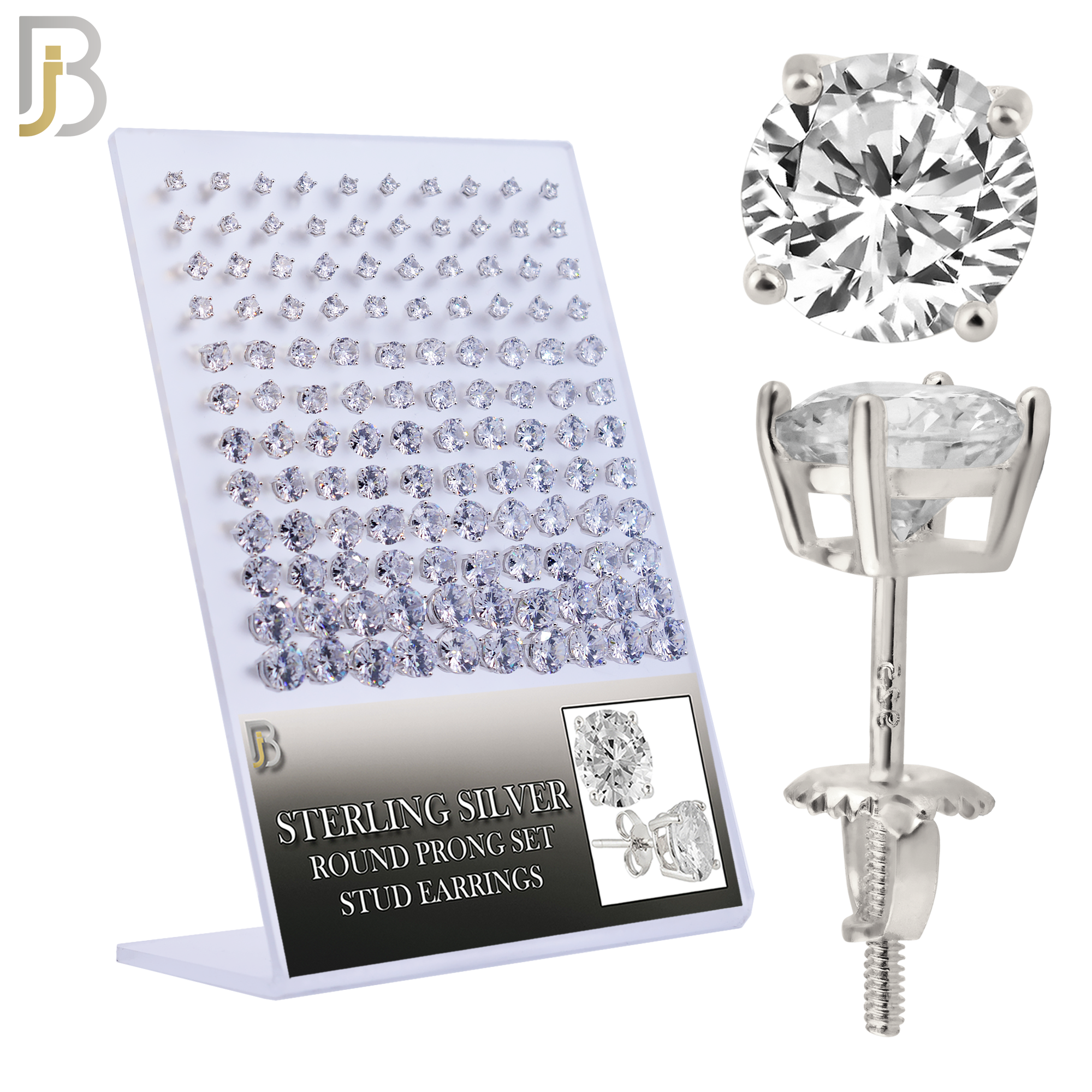 925 Sterling Silver Rhodium Plated Screw Back Earring Stud Casting Round Prong Setting Clear Zircon Pack of 120