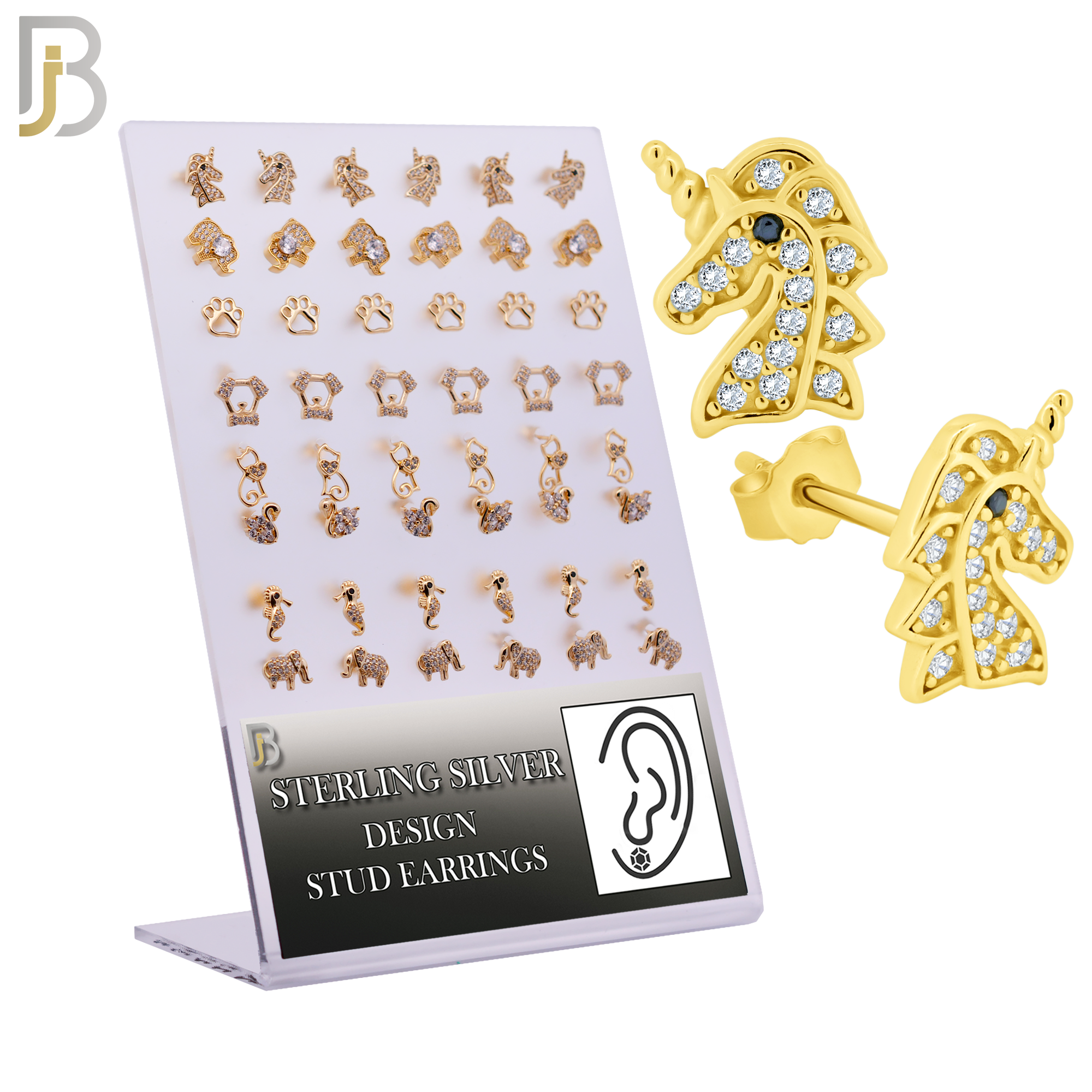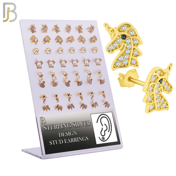 925 Sterling Silver Push Backing Animal Design Stud Earrings – Pack of 24 Pairs