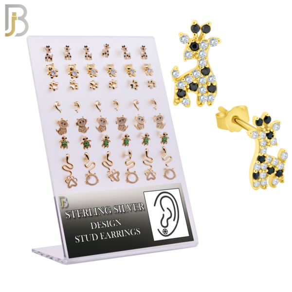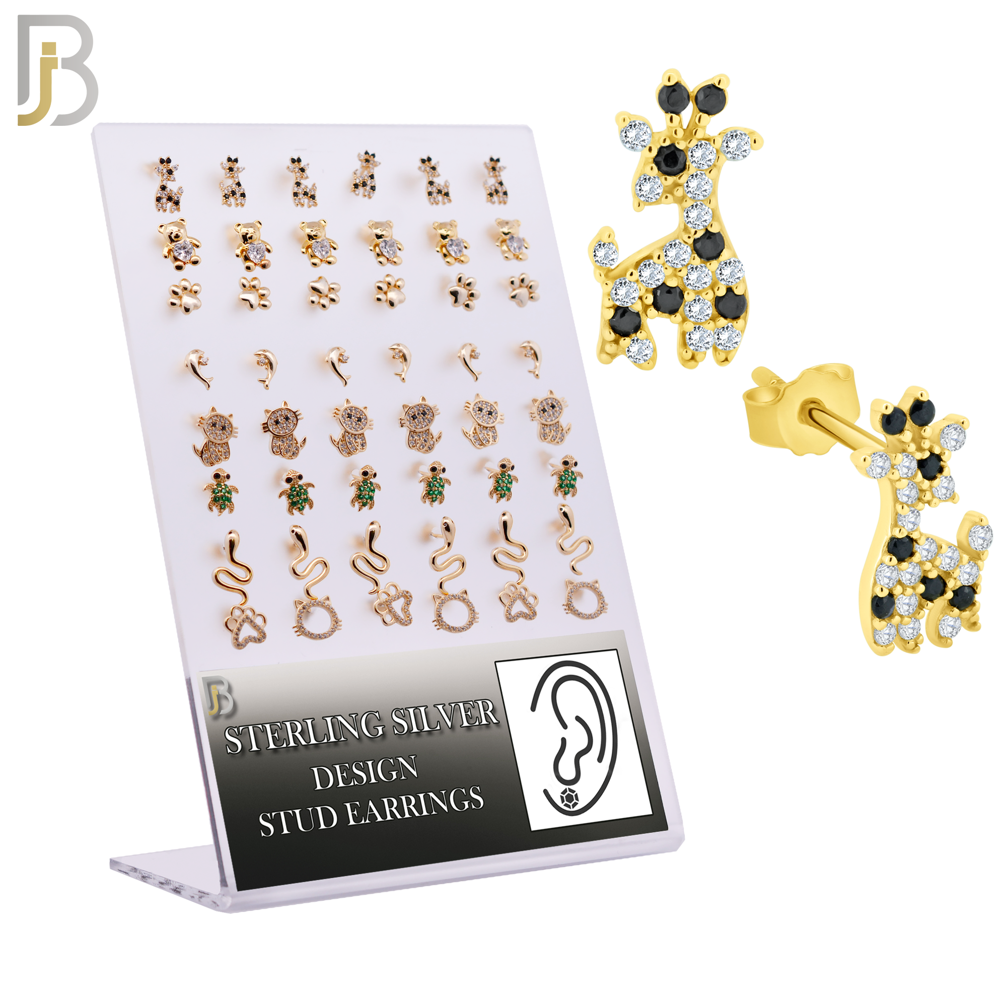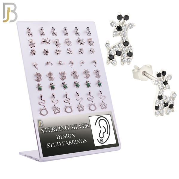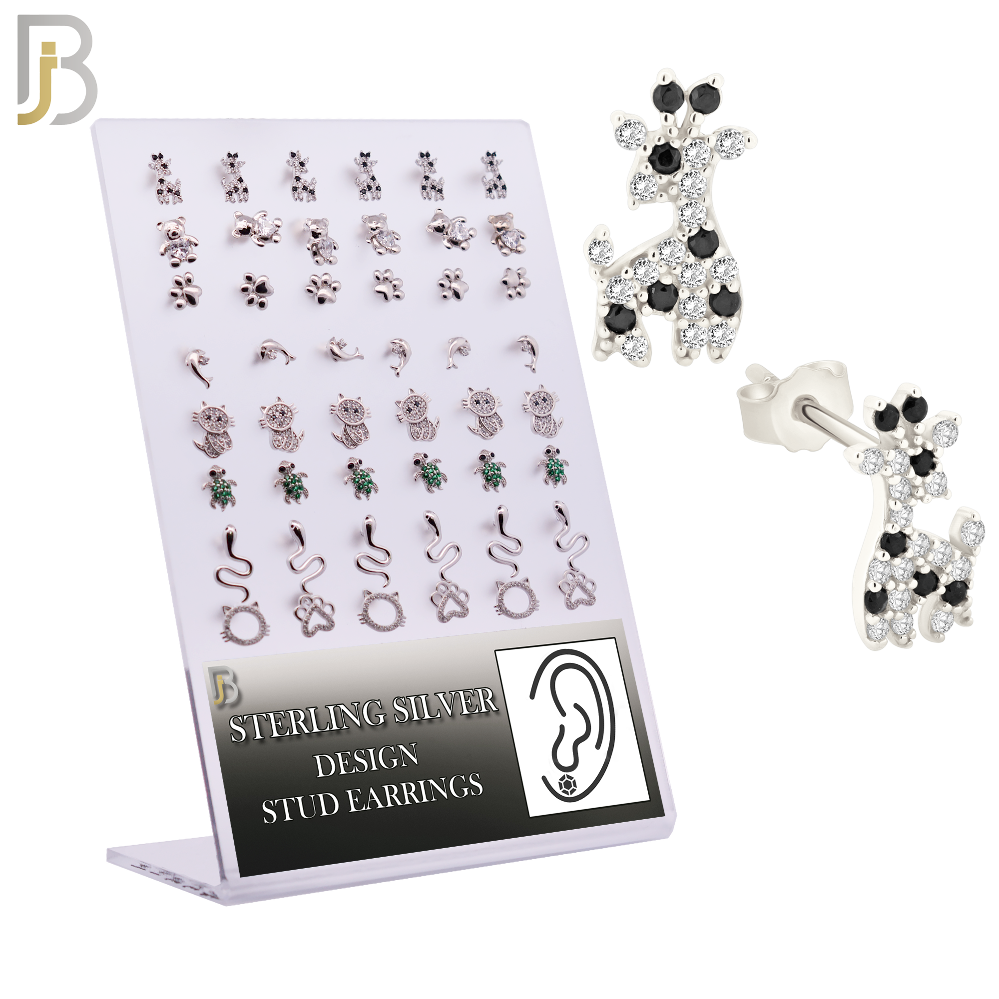 925 Sterling Silver Push Backing Animal Design Stud Earrings – Pack of 24 Pairs
