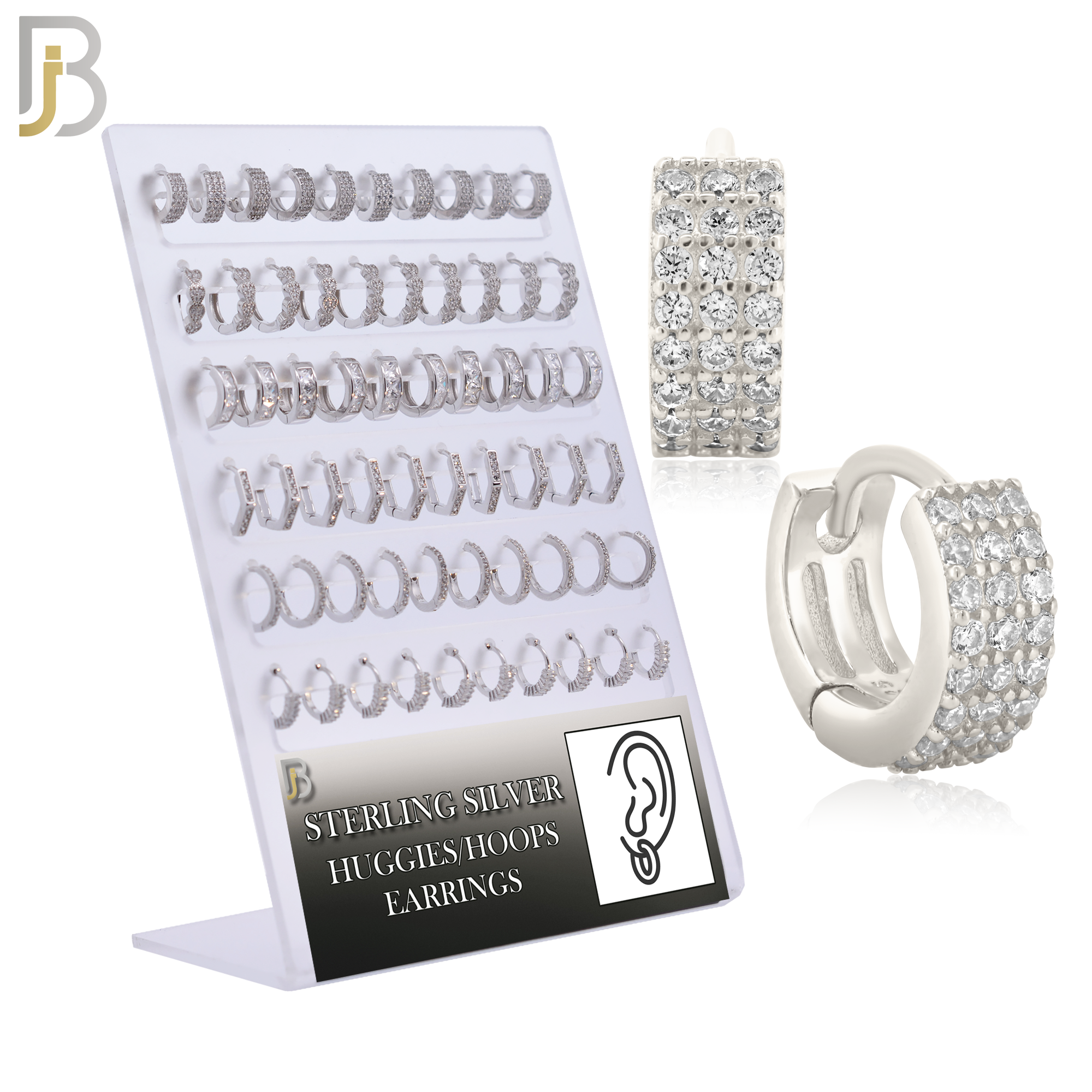 925 Sterling Silver Six Styles Hoop Earrings – Pack of 30 Pairs
