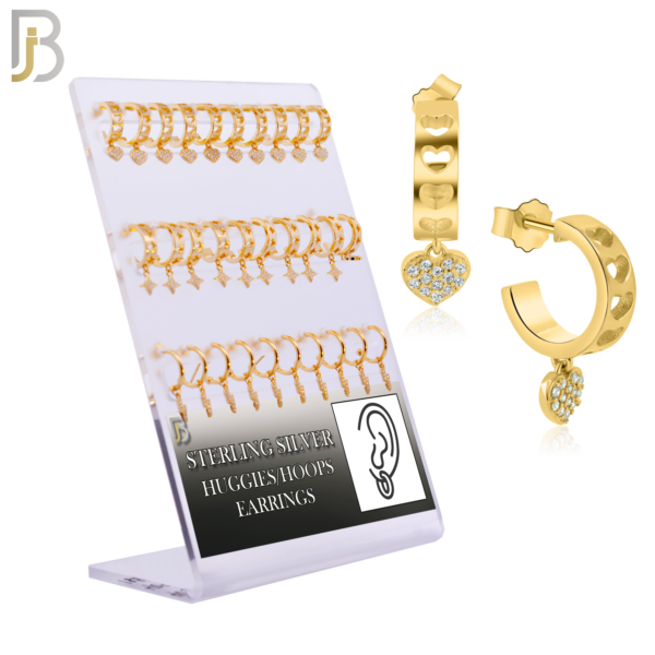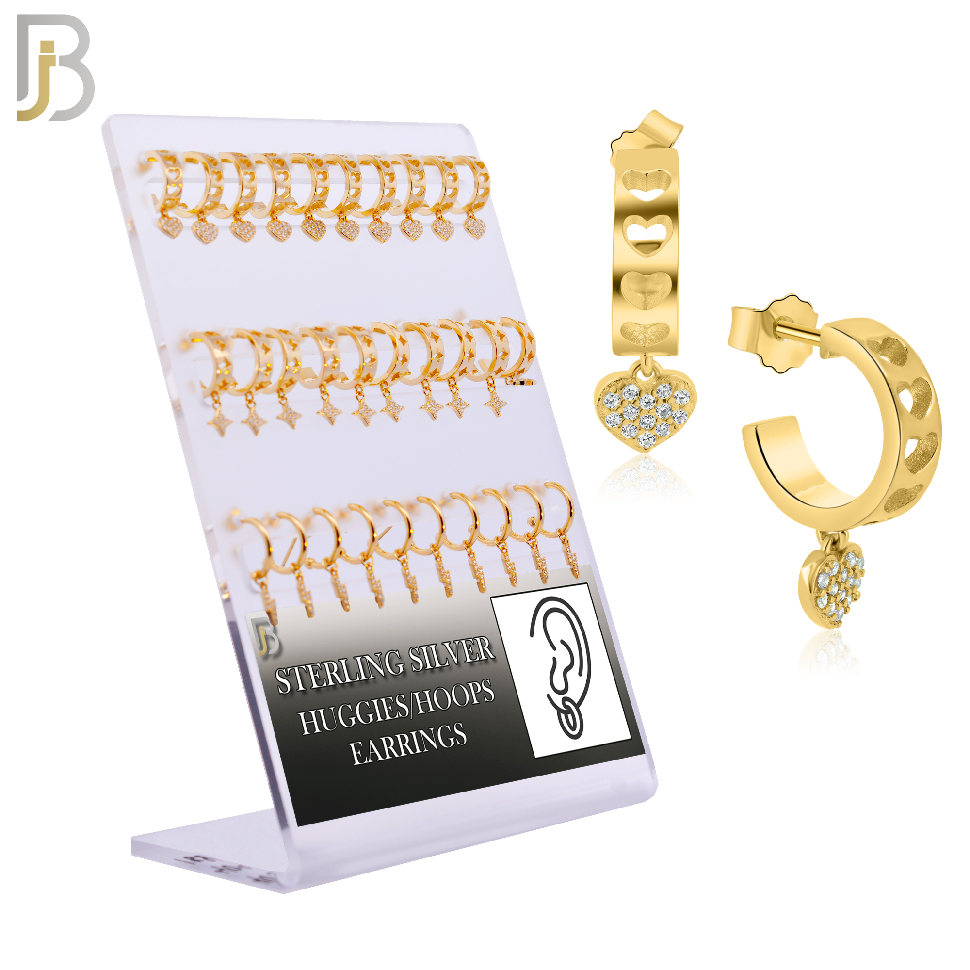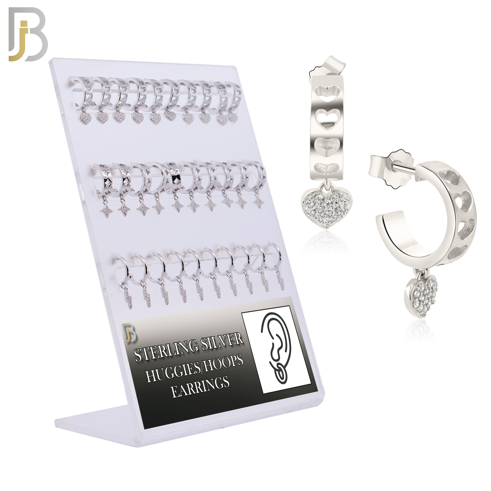 PK-ESHE03 – 925 Sterling Silver Three Styles Dangling Stud Hoop Earrings – Pack of 15 Pairs