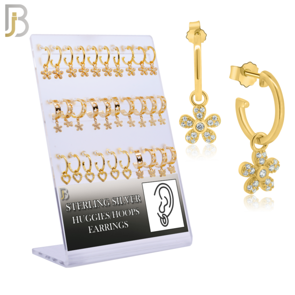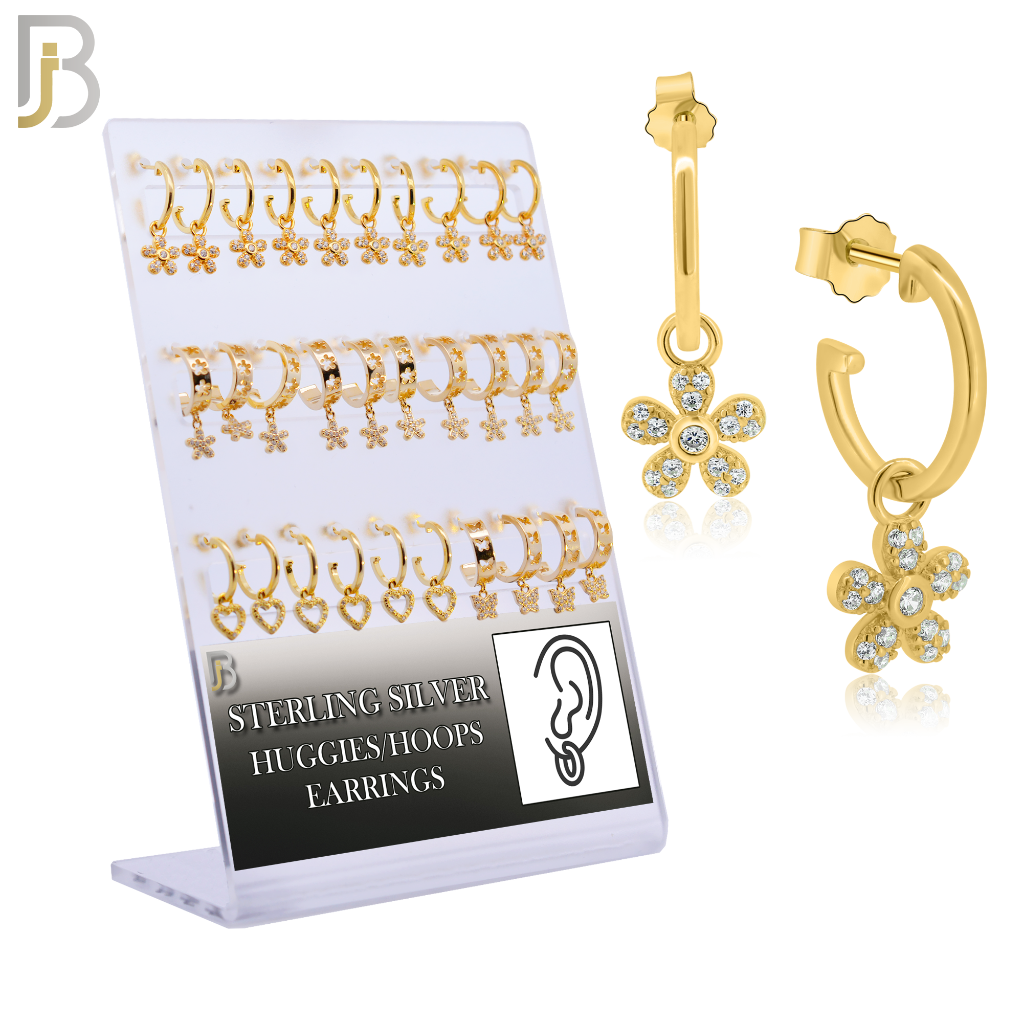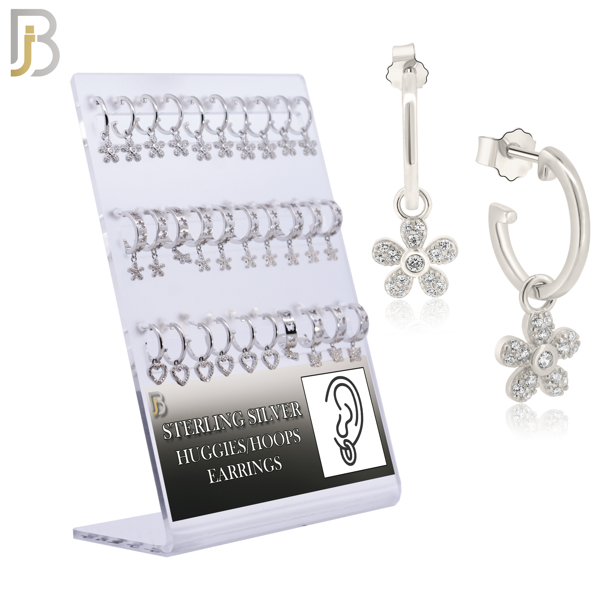 925 Sterling Silver Four Styles Dangling Stud Hoop Earrings – Pack of 15 Pairs