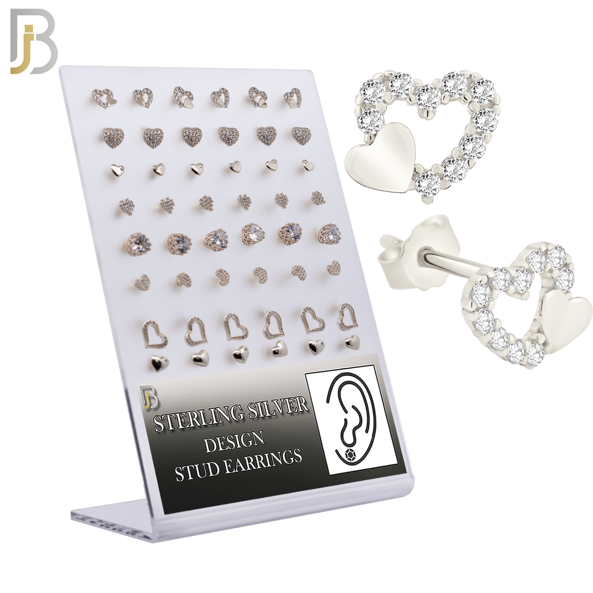 925 Sterling Silver Push Backing Heart Design Pack of 24 Pairs