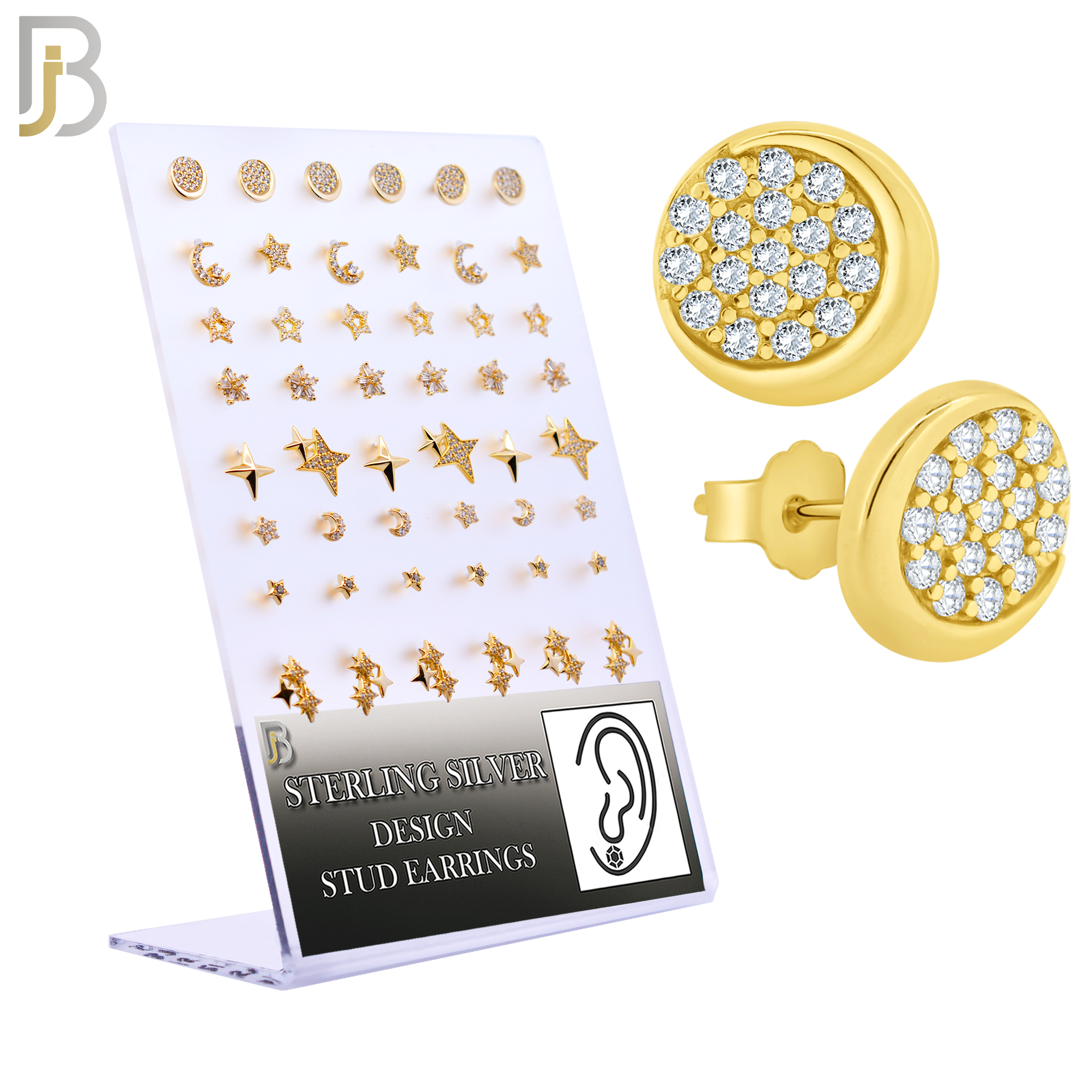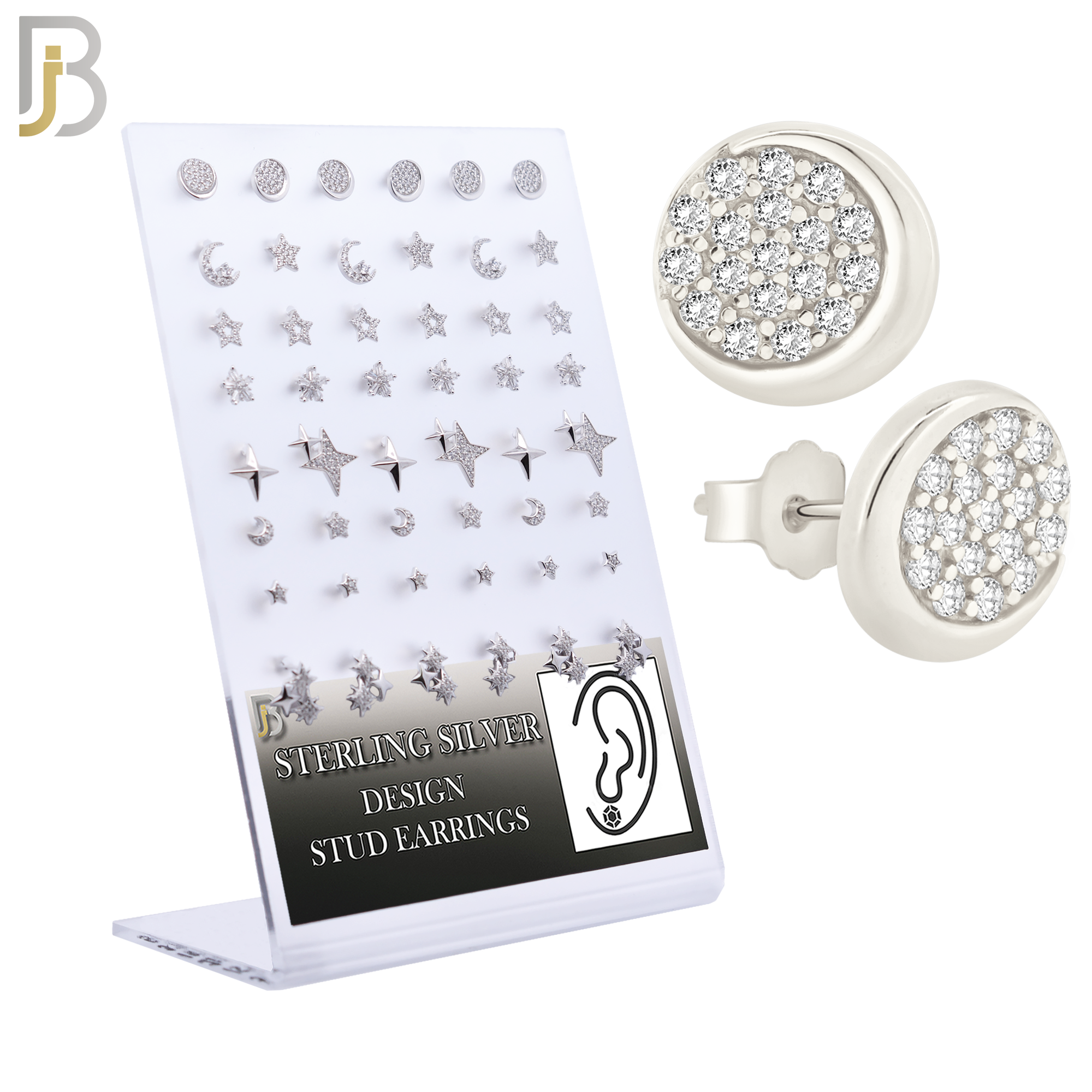 925 Sterling Silver Push Backing Star and Moon Design Pack of 24 Pairs
