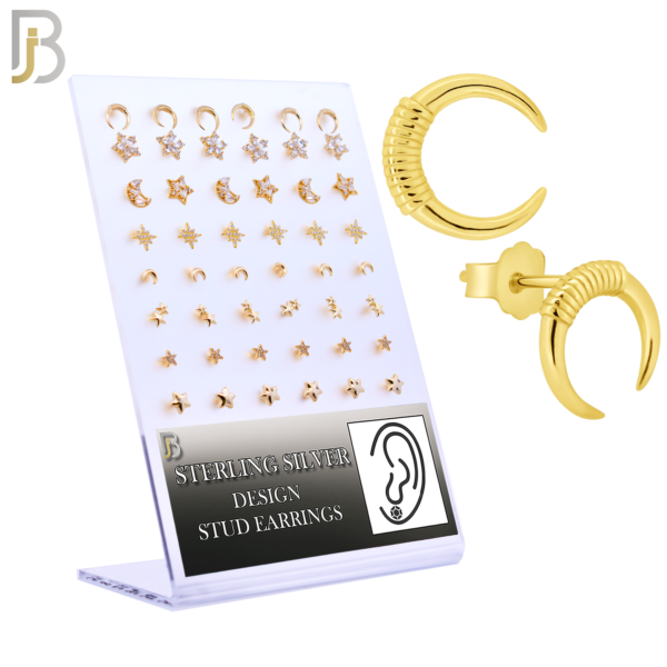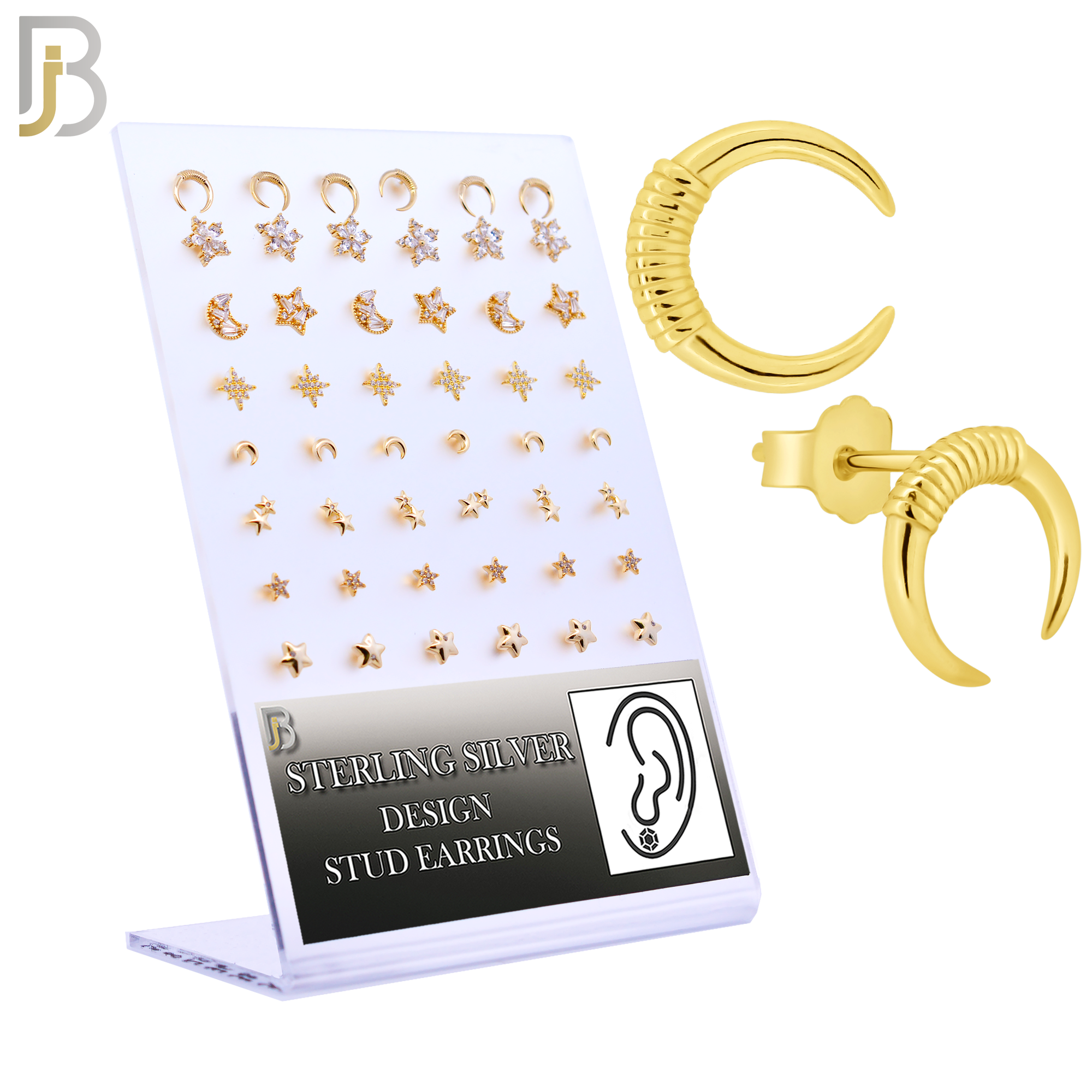 925 Sterling Silver Push Backing Star and Moon Design Pack of 24 Pairs