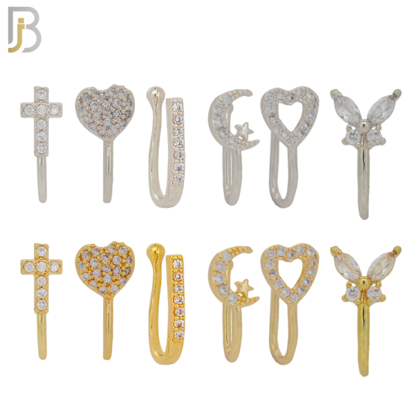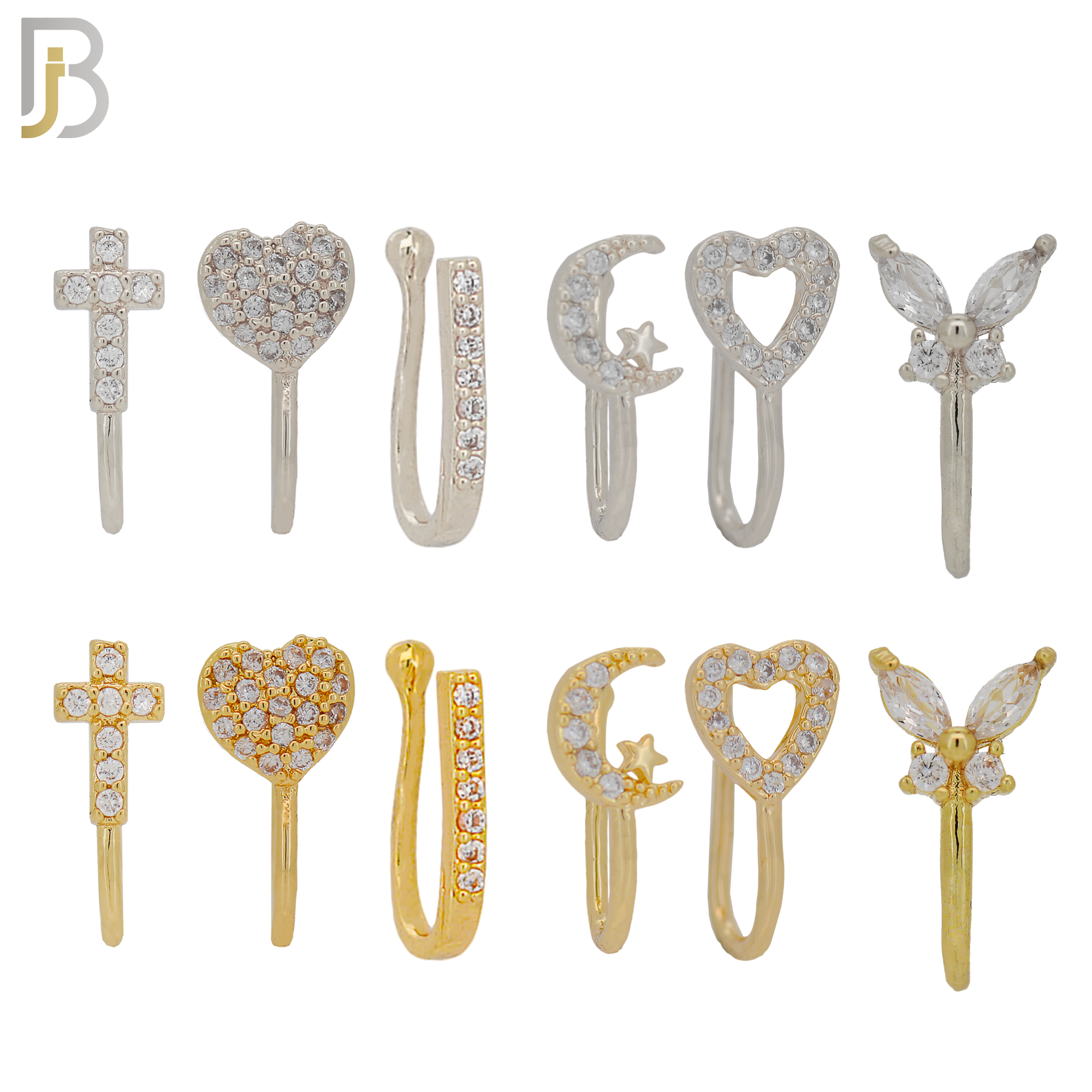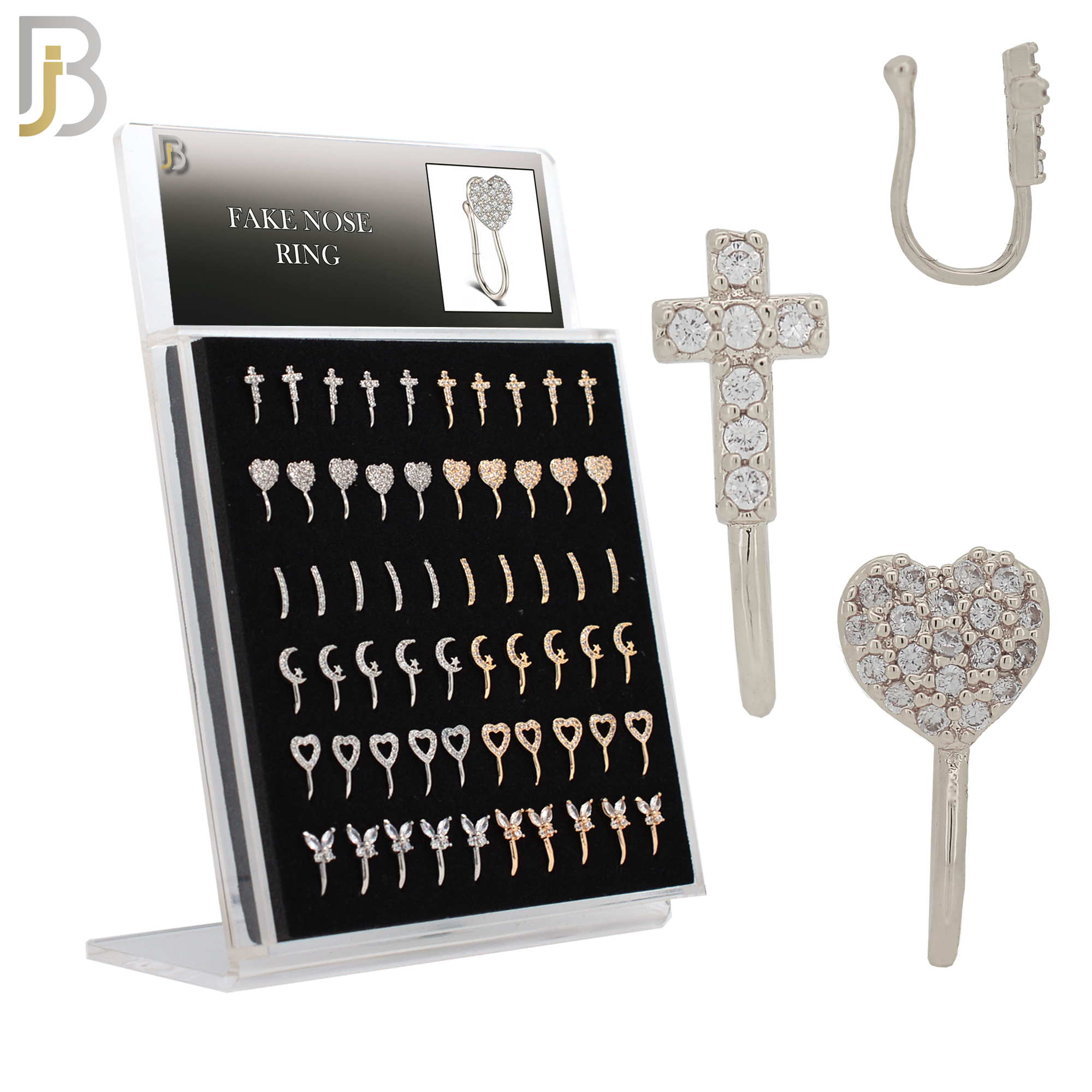 Brass Fake Nose Hoops with Different Designs – Pack of 60