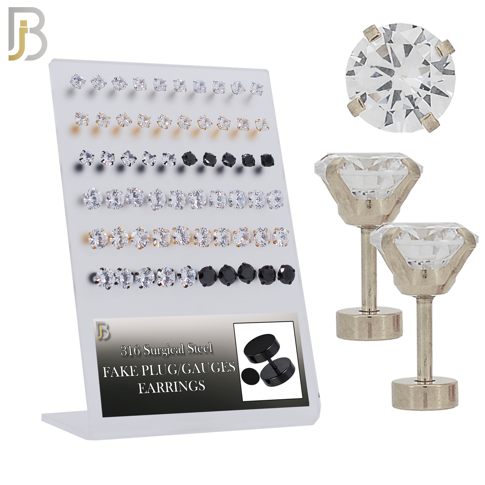 316L Surgical Steel Prong Set 5mm Screw Back Plain Round Fake Plugs Pack of 30 Pairs
