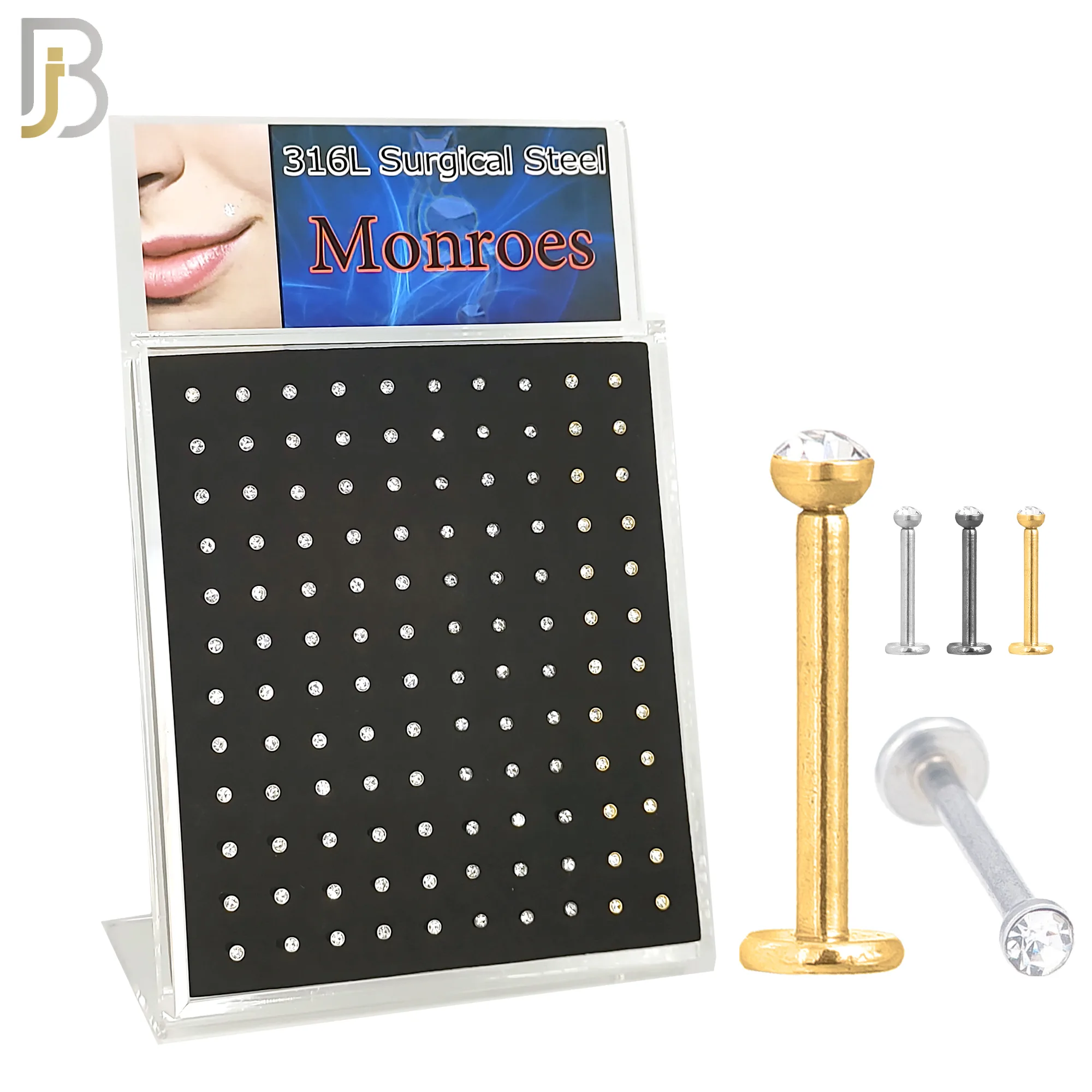 316L Surgical Steel Internal Threaded Screw Bezel Setting Top Zircon Pack of 120