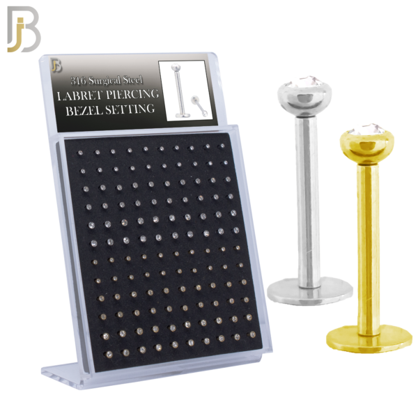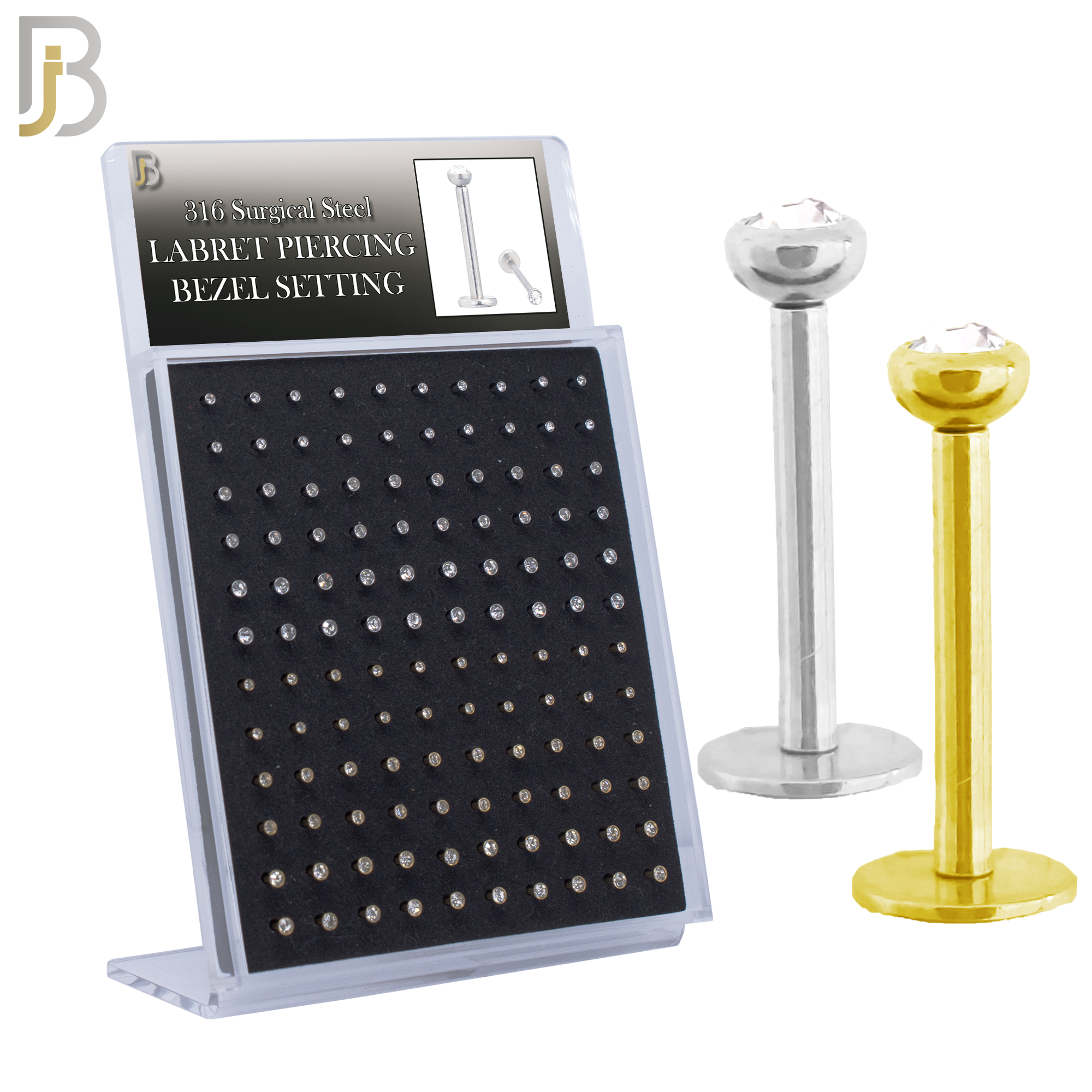 316 Surgical Steel Bezel Set Clear Single Zircon Labret (Pack of 120)