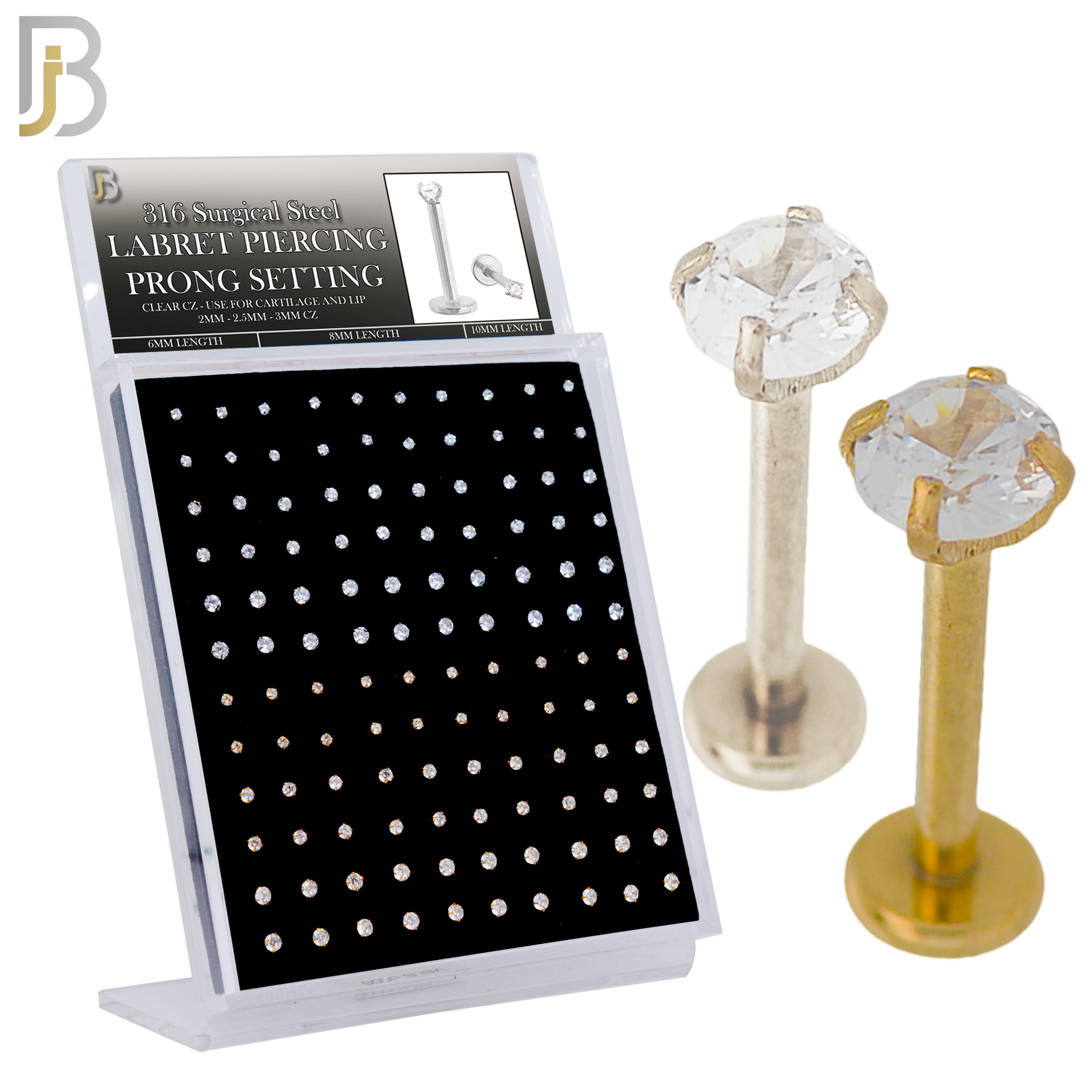 316L Surgical Steel Internal Threaded Screw Prong Setting Top Zircon Pack of 120